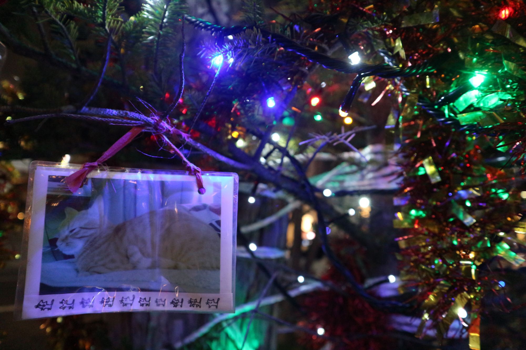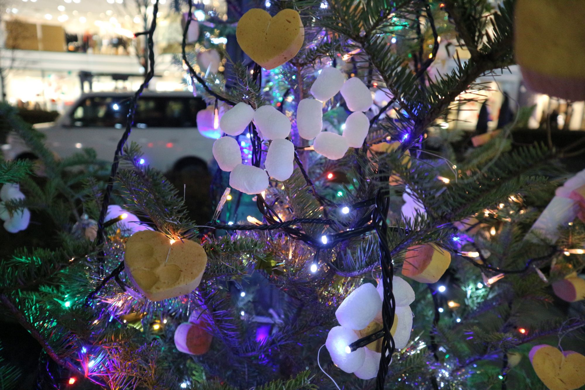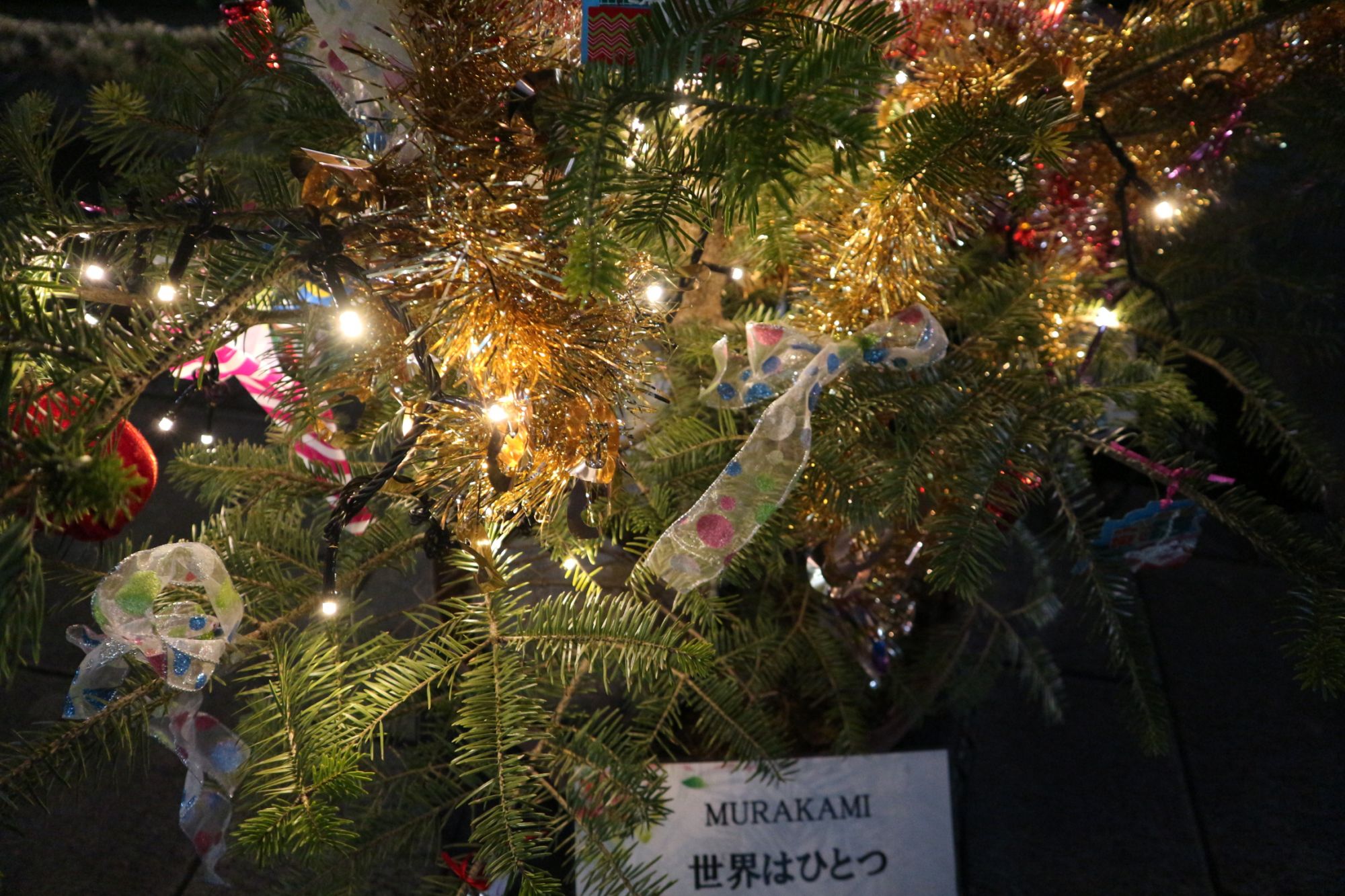 それぞれ工夫を凝らしたオーナメントが吊るされたクリスマスツリー