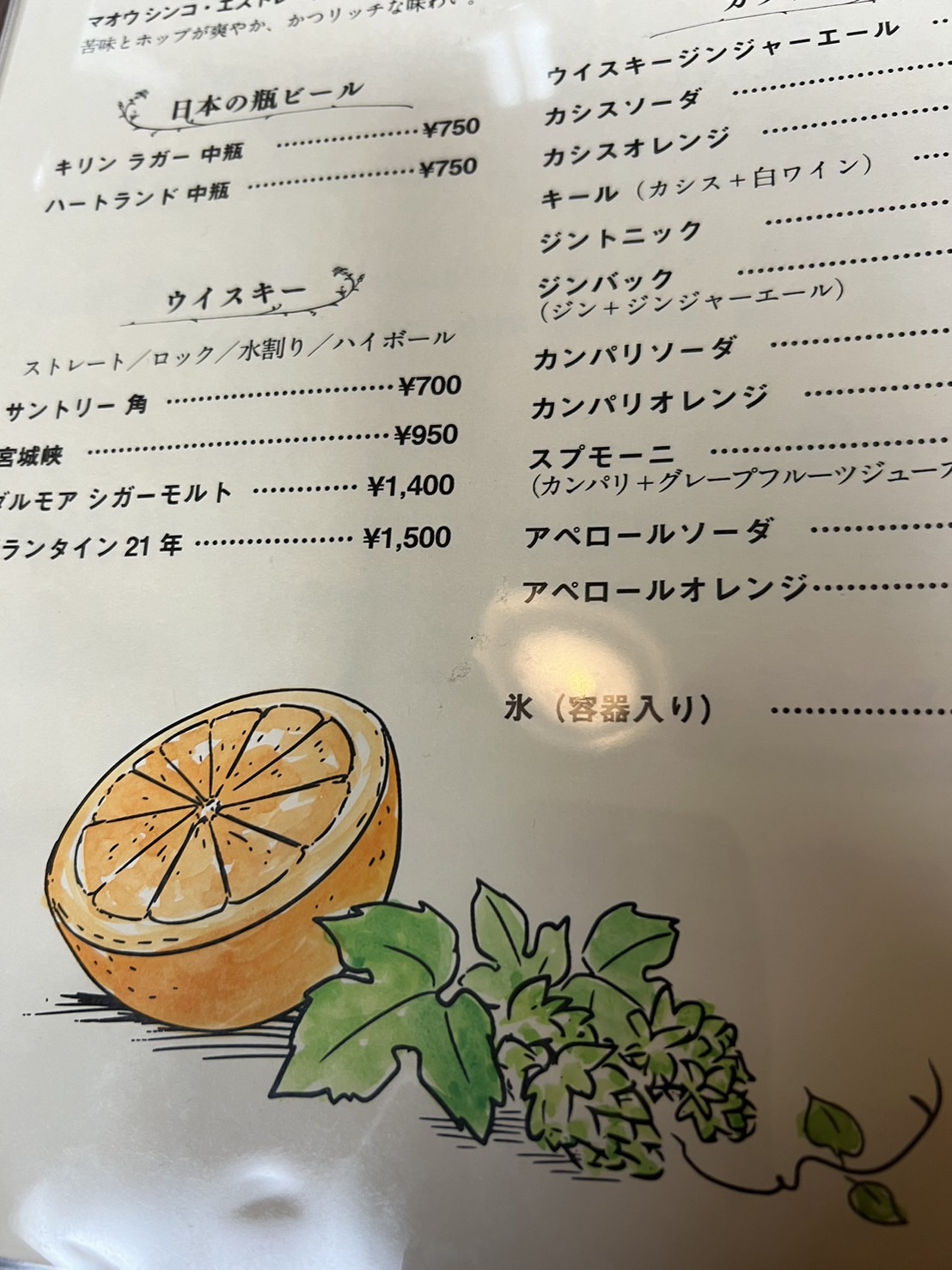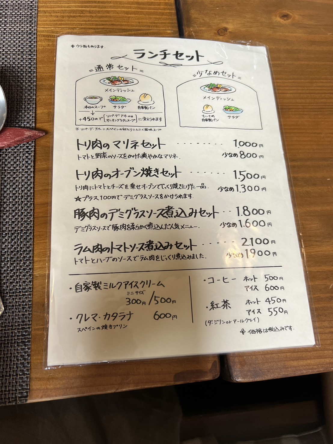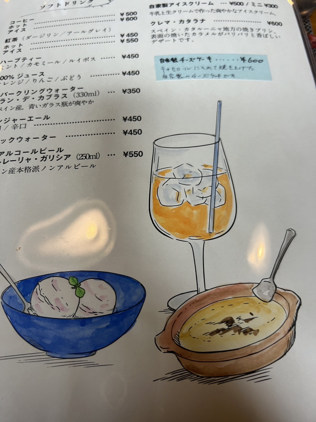 店長のイラストが可愛らしいドリンクメニュー