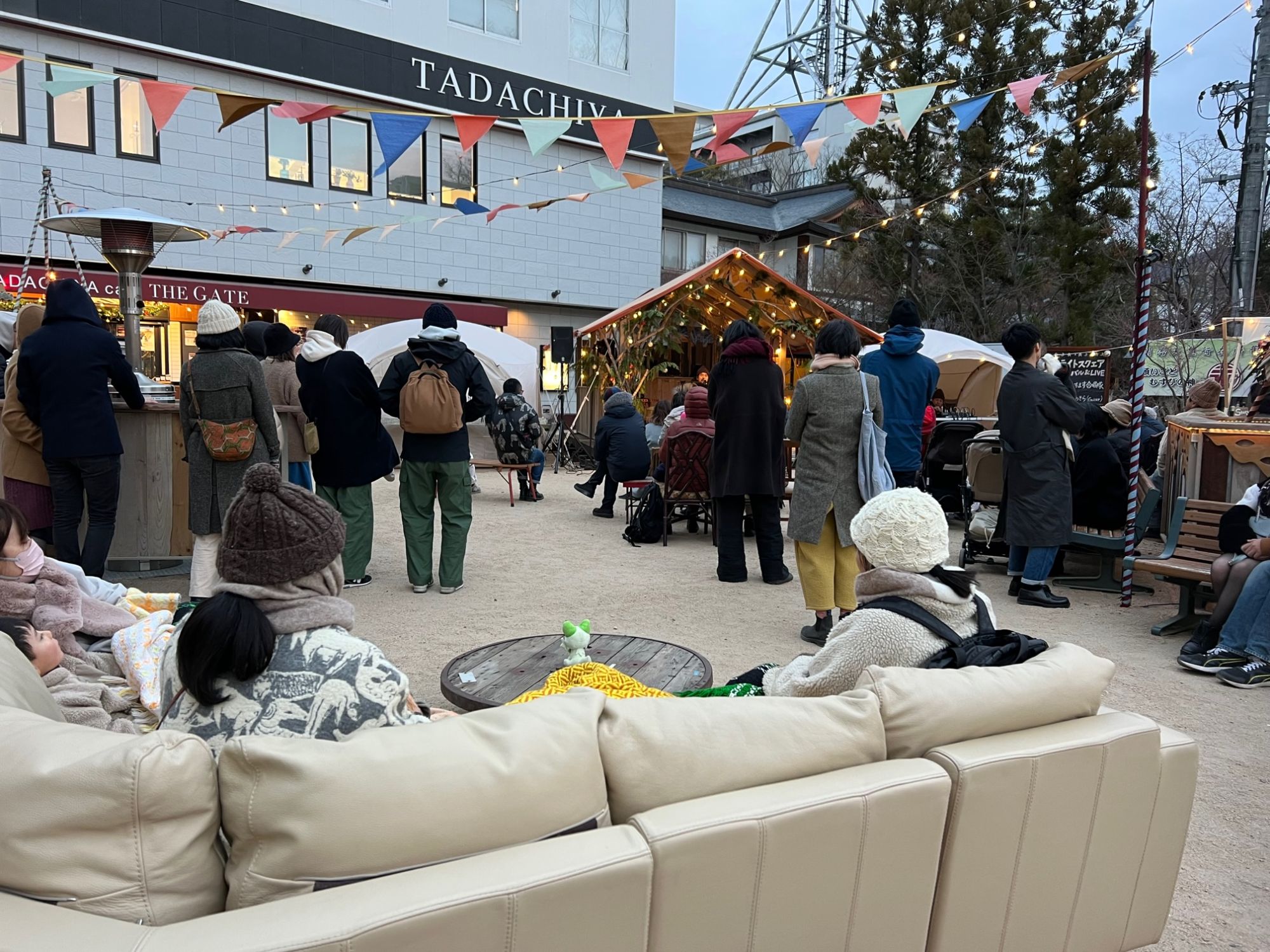 日が暮れてツリーも点灯、キャンドルにも火が灯りました。