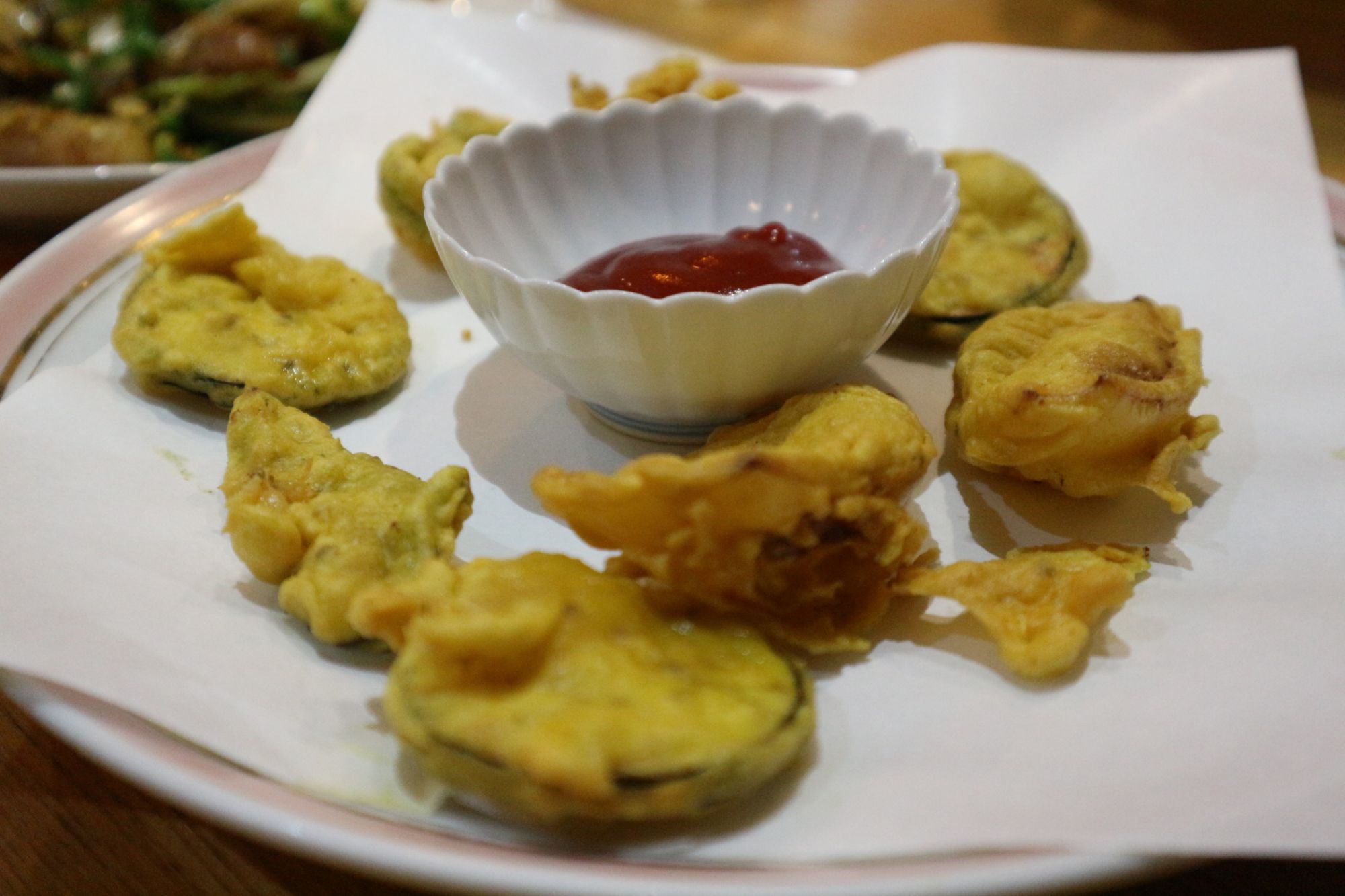 ベジハコラインド風野菜の天ぷら 700円 ドライスクティ(チリorオリジナルソース)