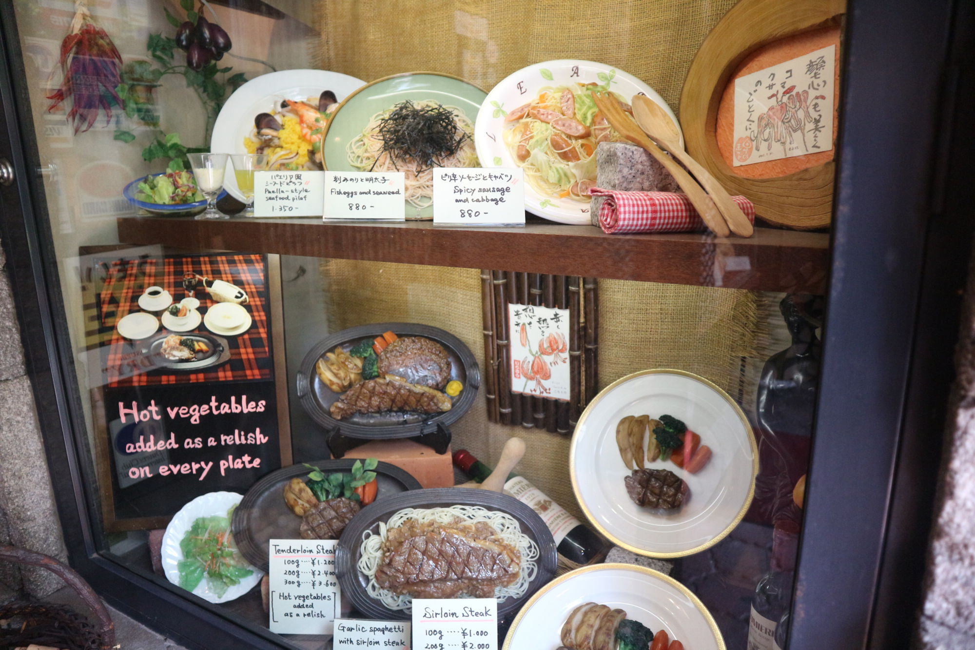 入口のガラスケースには、サンプルが飾られ外国人のお客様にはとてもわかりやすいです。