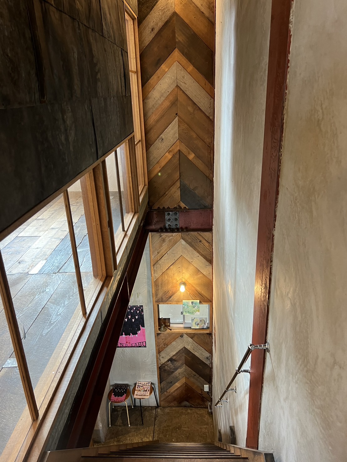 細い階段を昇ります。