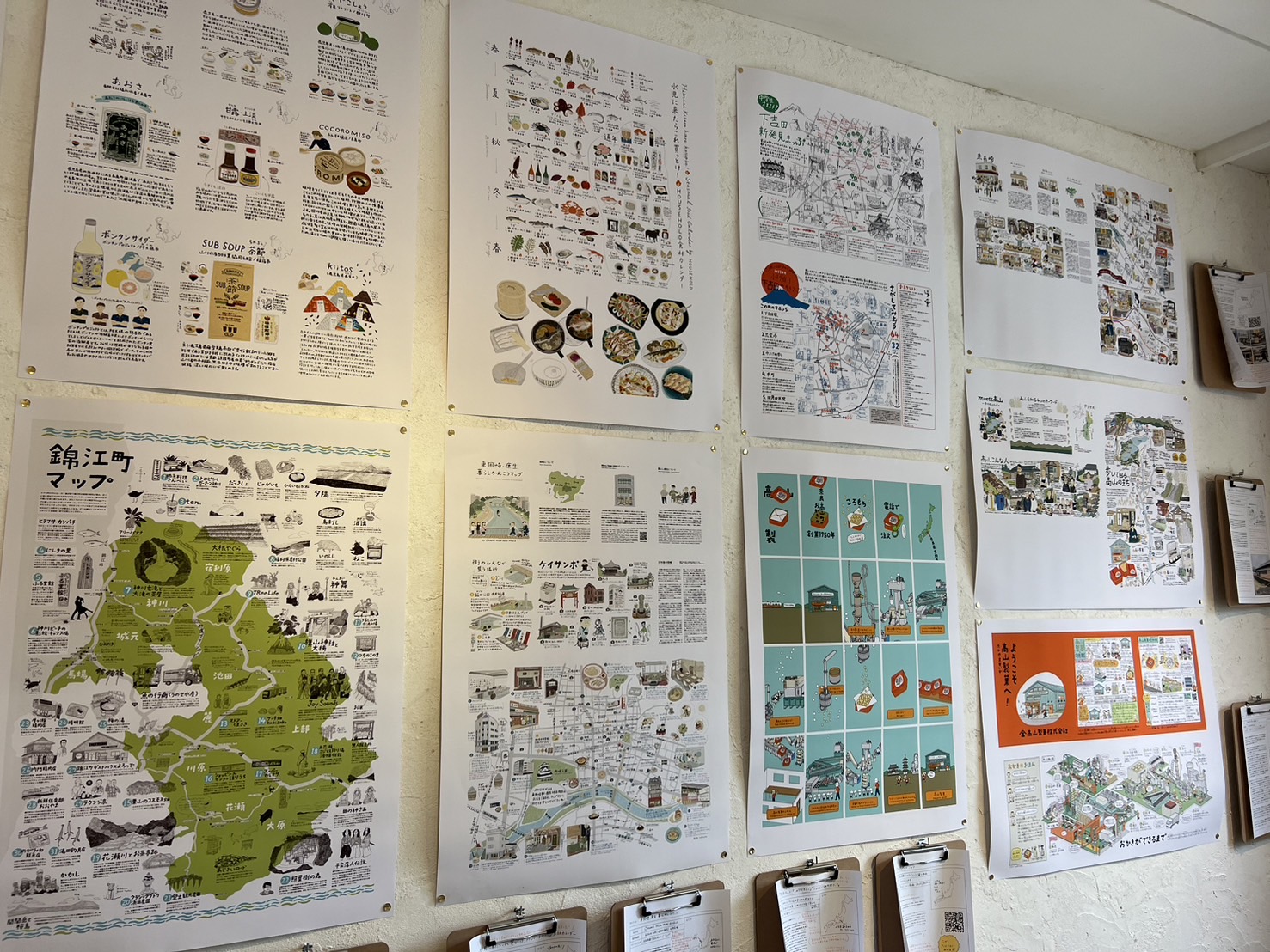 山本さんが制作した全国各地の手描きの地図22点とそれぞれ地図にまつわる「レポート」が展示されていました。