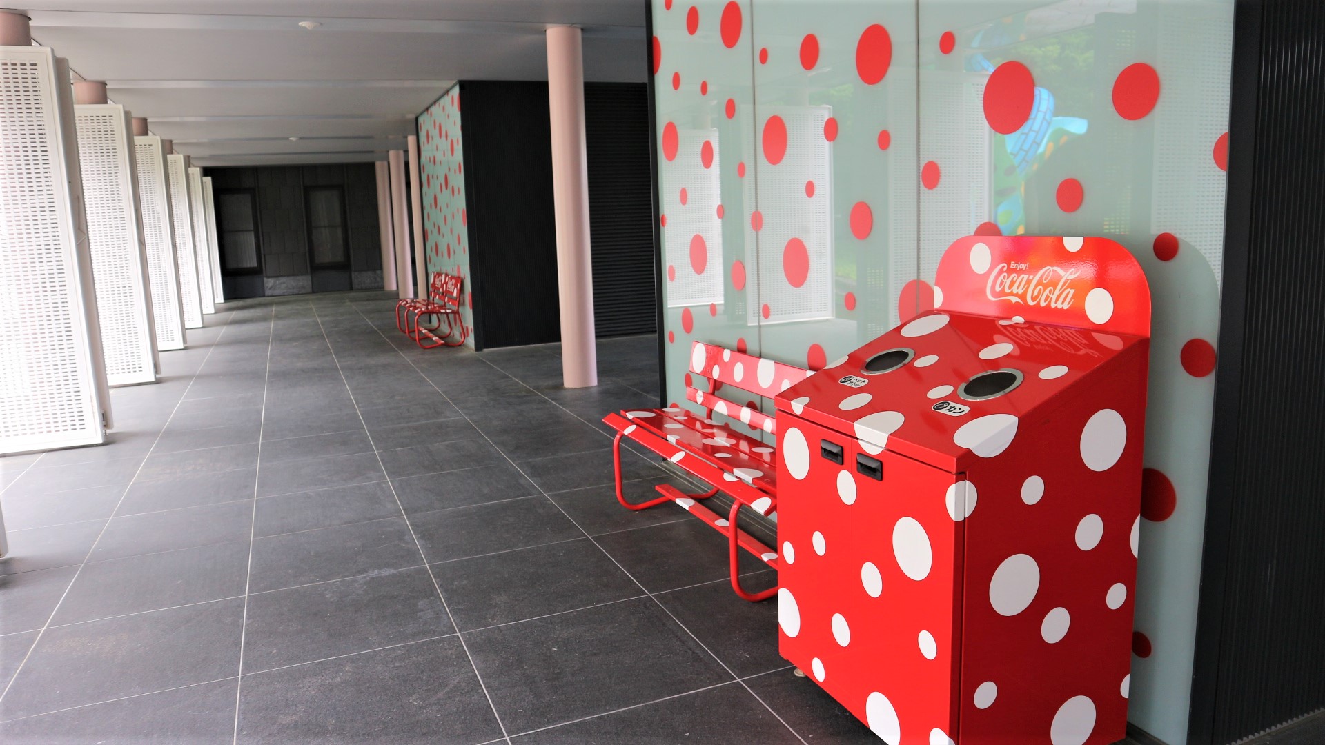 赤い水玉ベンチ
