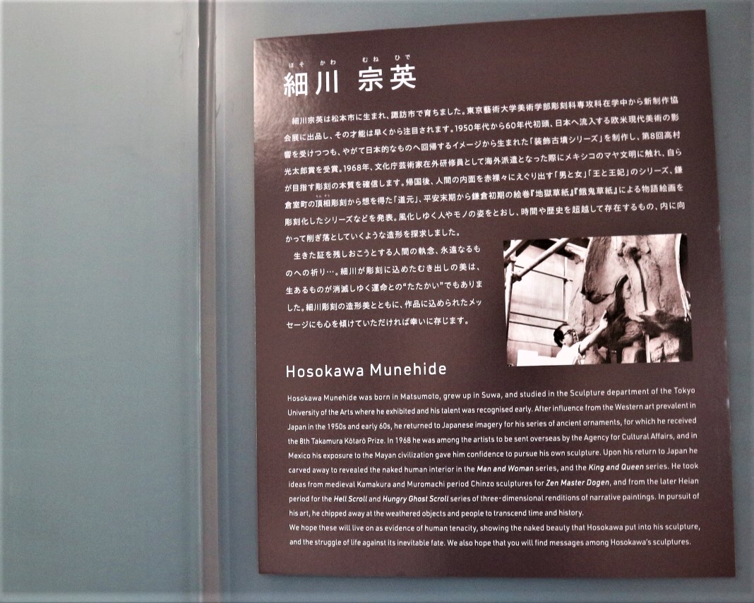 松本市出身の彫刻家細川宗英氏の作品がオープンギャラリーに展示されています。