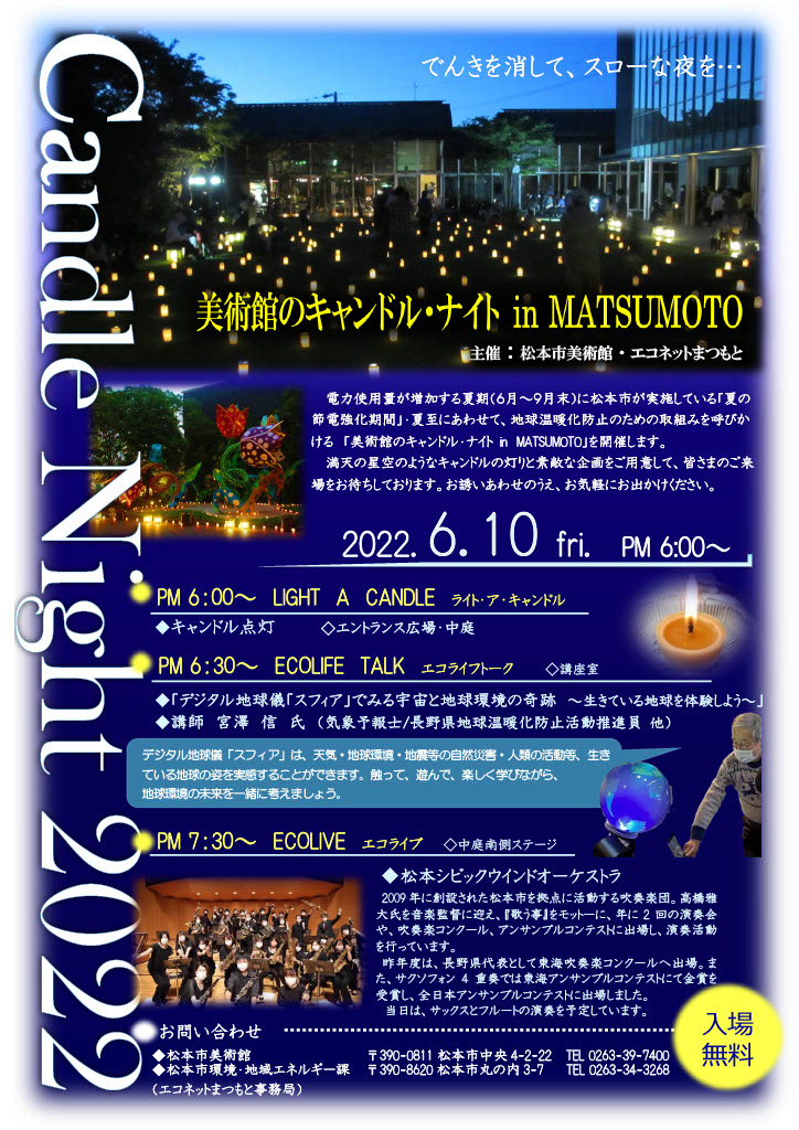 今夜10日18時~20時30分 「美術館のキャンドル・ナイト in MATSUMOTO」が開催されます。