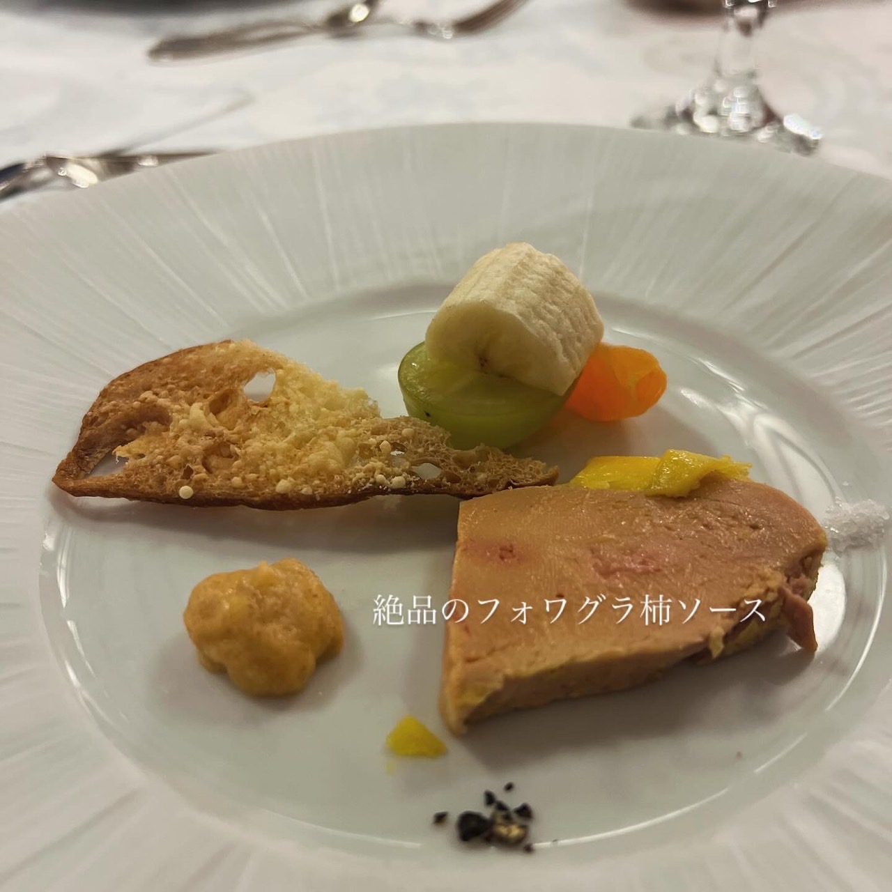 フォワグラのコンフィと柿のクーリー フルーツ添え