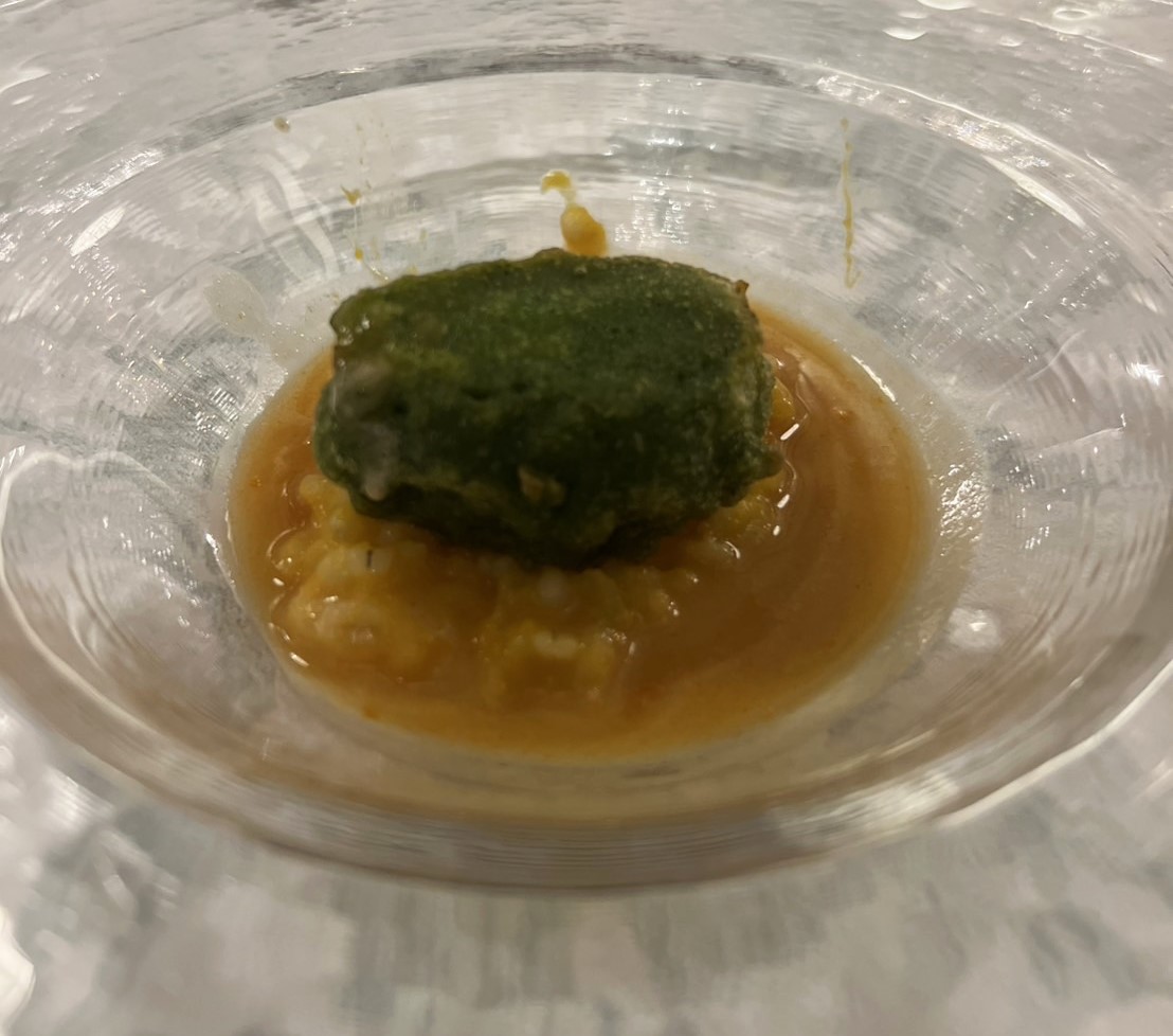 Consommé de cèpes á la mousseline de huîtres et châtaignier