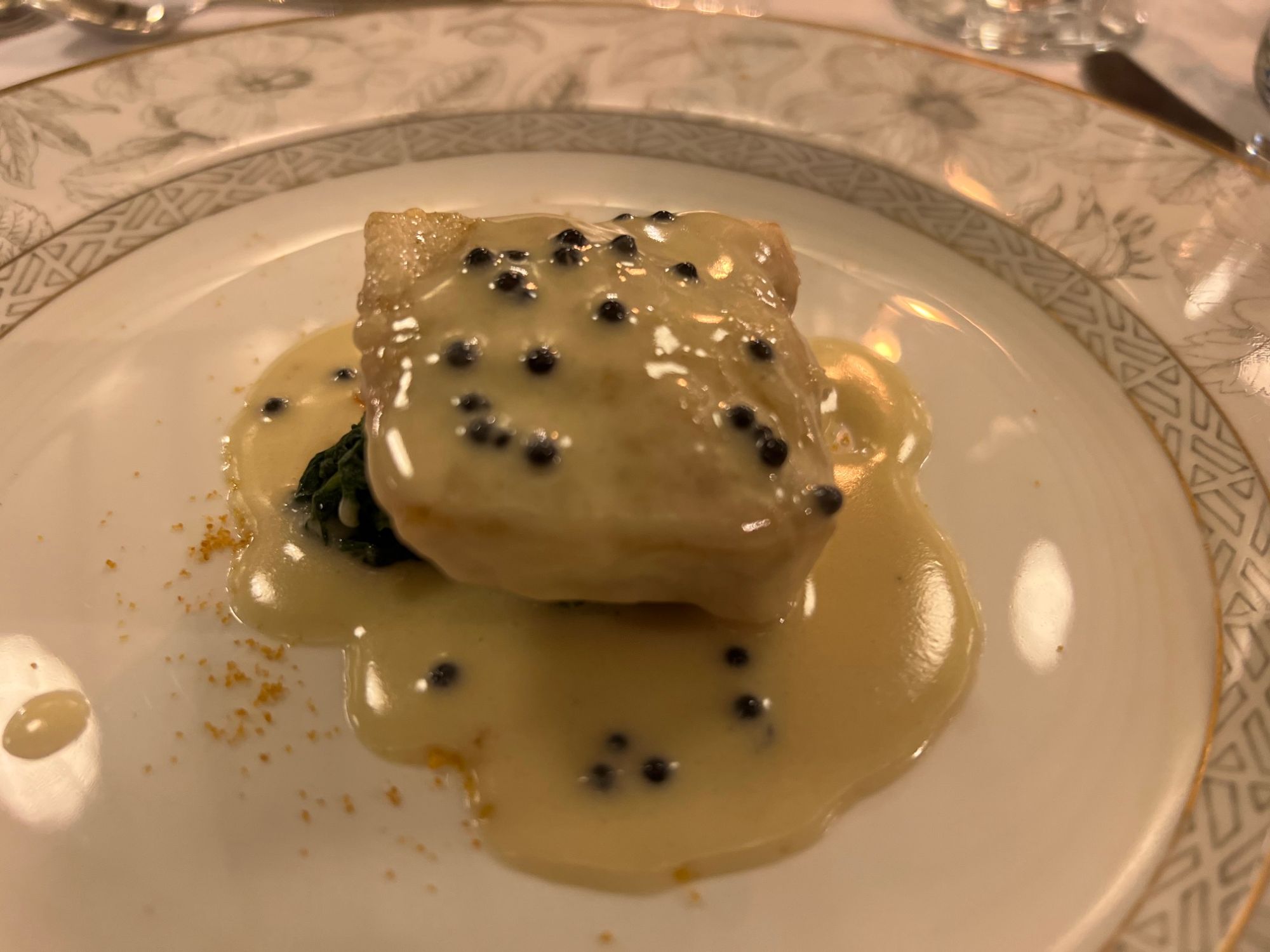 ホワイトソースにはシャンパンが入り、ほうれん草が敷かれた上に鯛が乗り