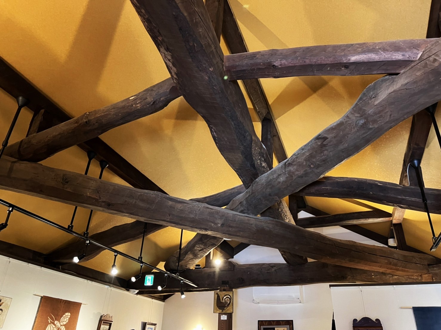 階段を上がると大きな梁が目を惹く美しいギャラリーに着きました。