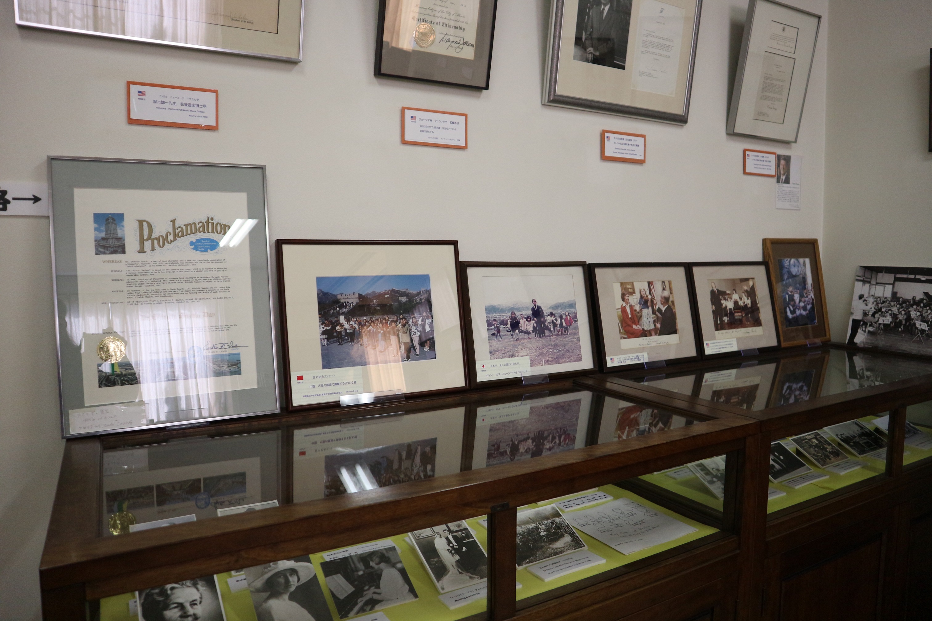 壁には、日本国内は、元より欧米各国から数々の名誉市民称号・博士号などの認定書。賞状が展示されています。