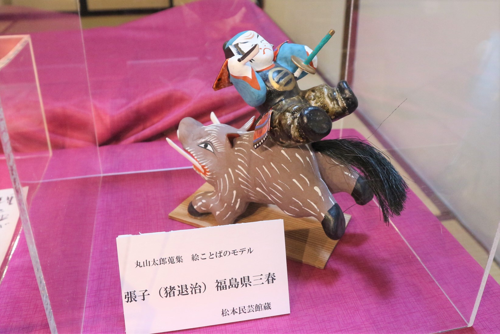 松本中町出身の丸山太郎のコレクション「張子(猪退治)」
