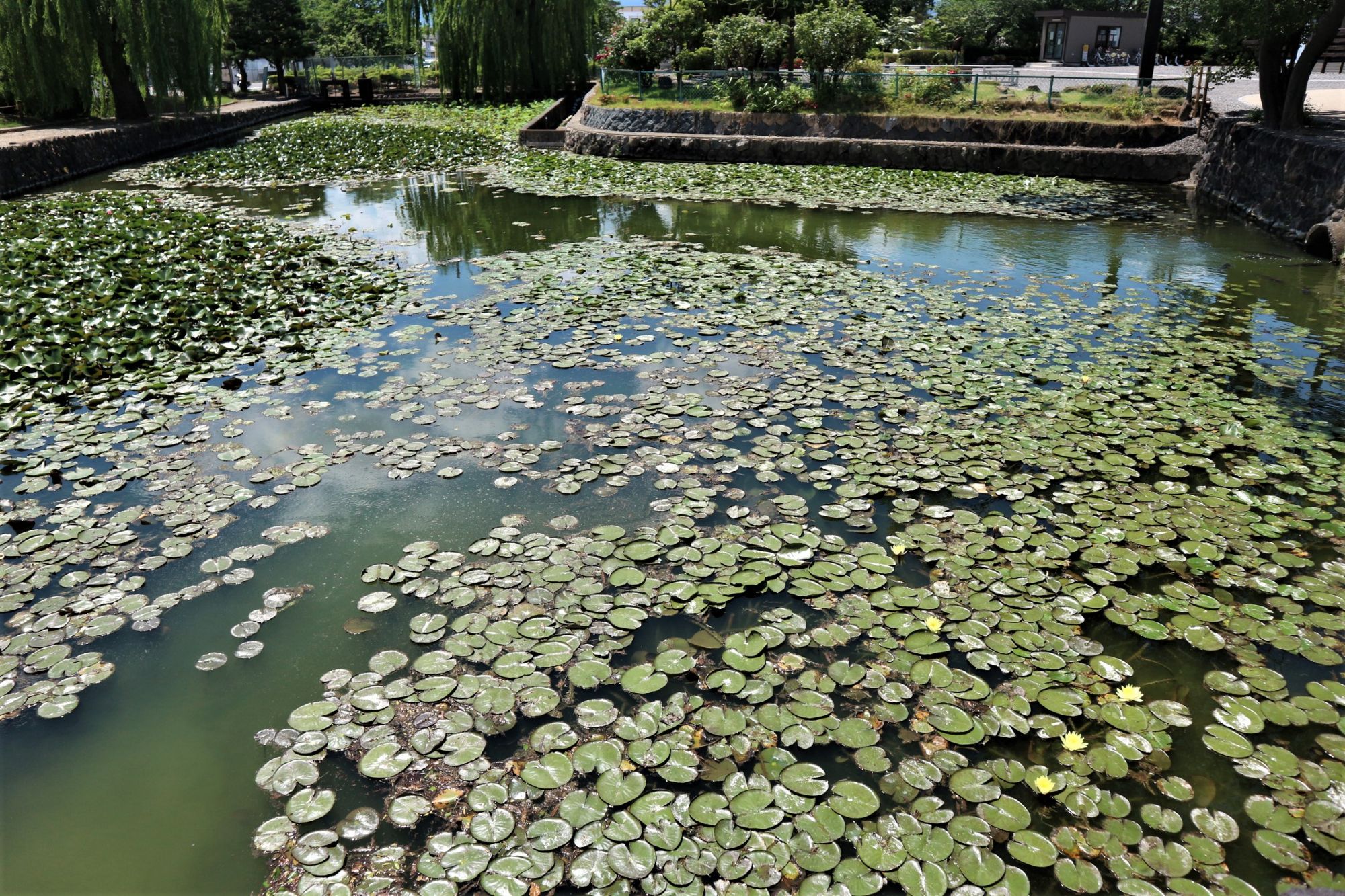 公園の池のスイレンの花も咲き始めていました。