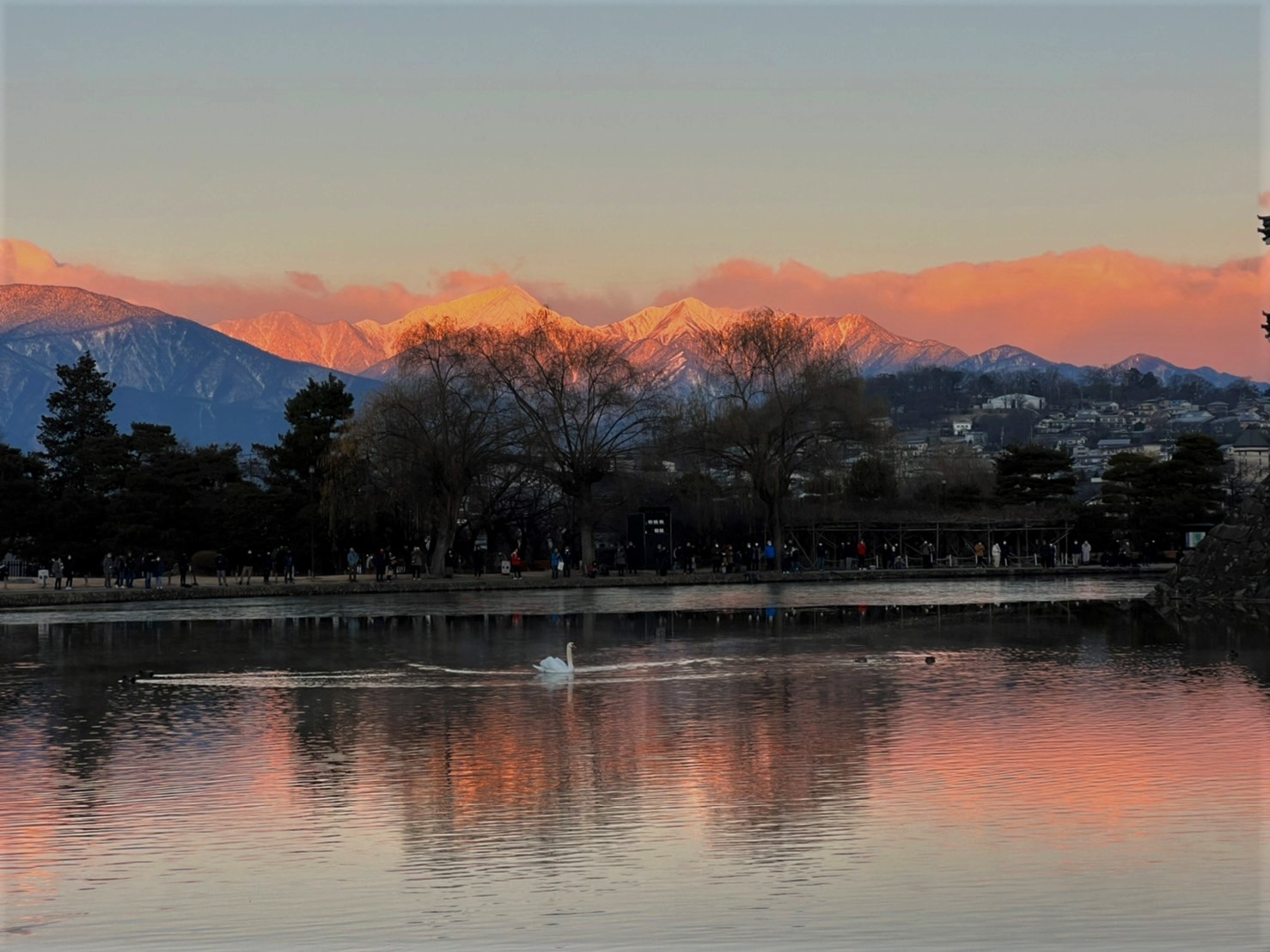 内堀では、白鳥が優雅に泳いでいました。