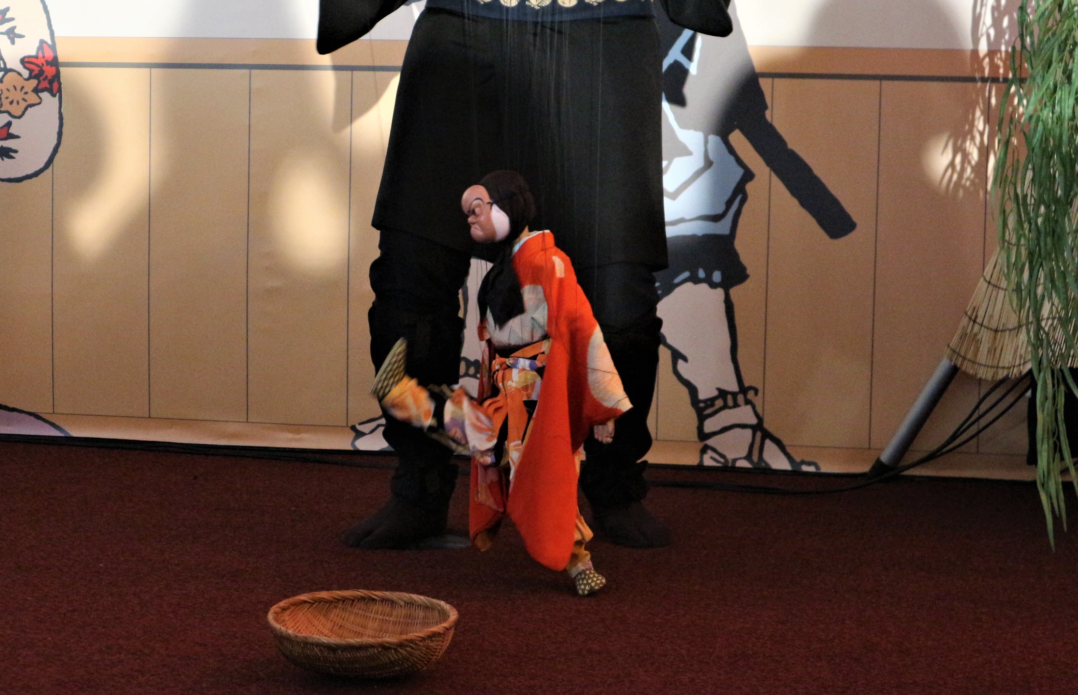 2階では、人形浄瑠璃の大道芸!