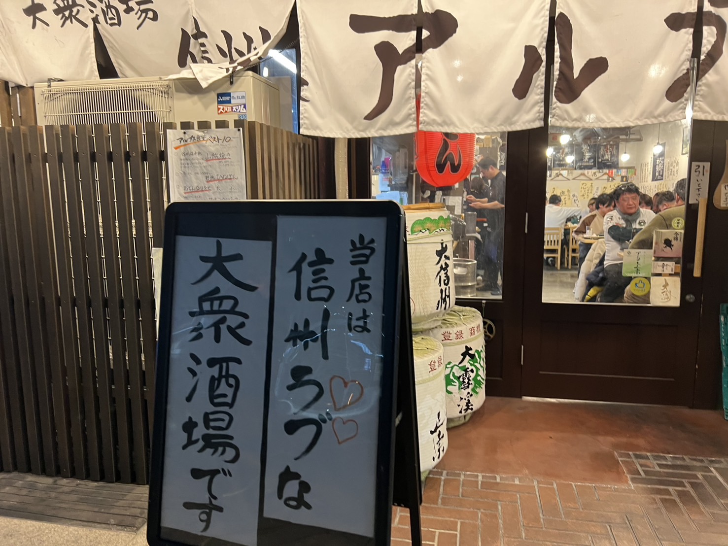 駅前付近で居酒屋に行きたい!前から大きな暖簾が気になっていた2024年4月にオープンした「信州・松本アルプス食堂」に行きました。
