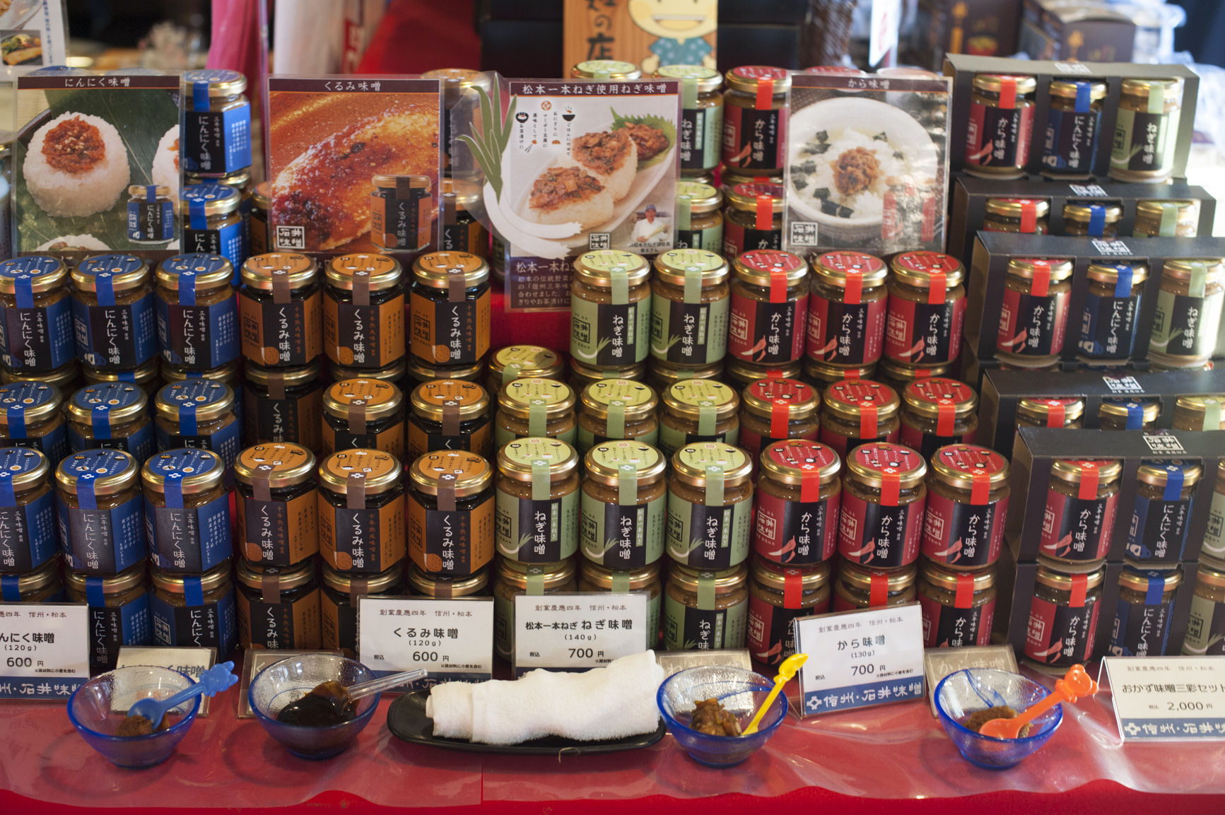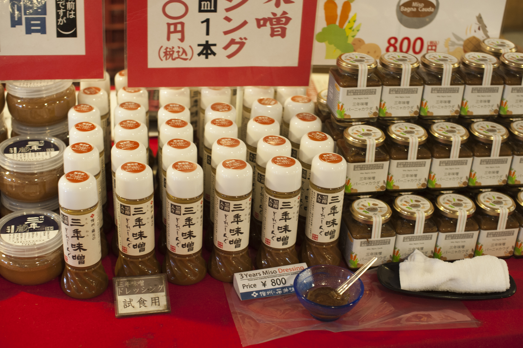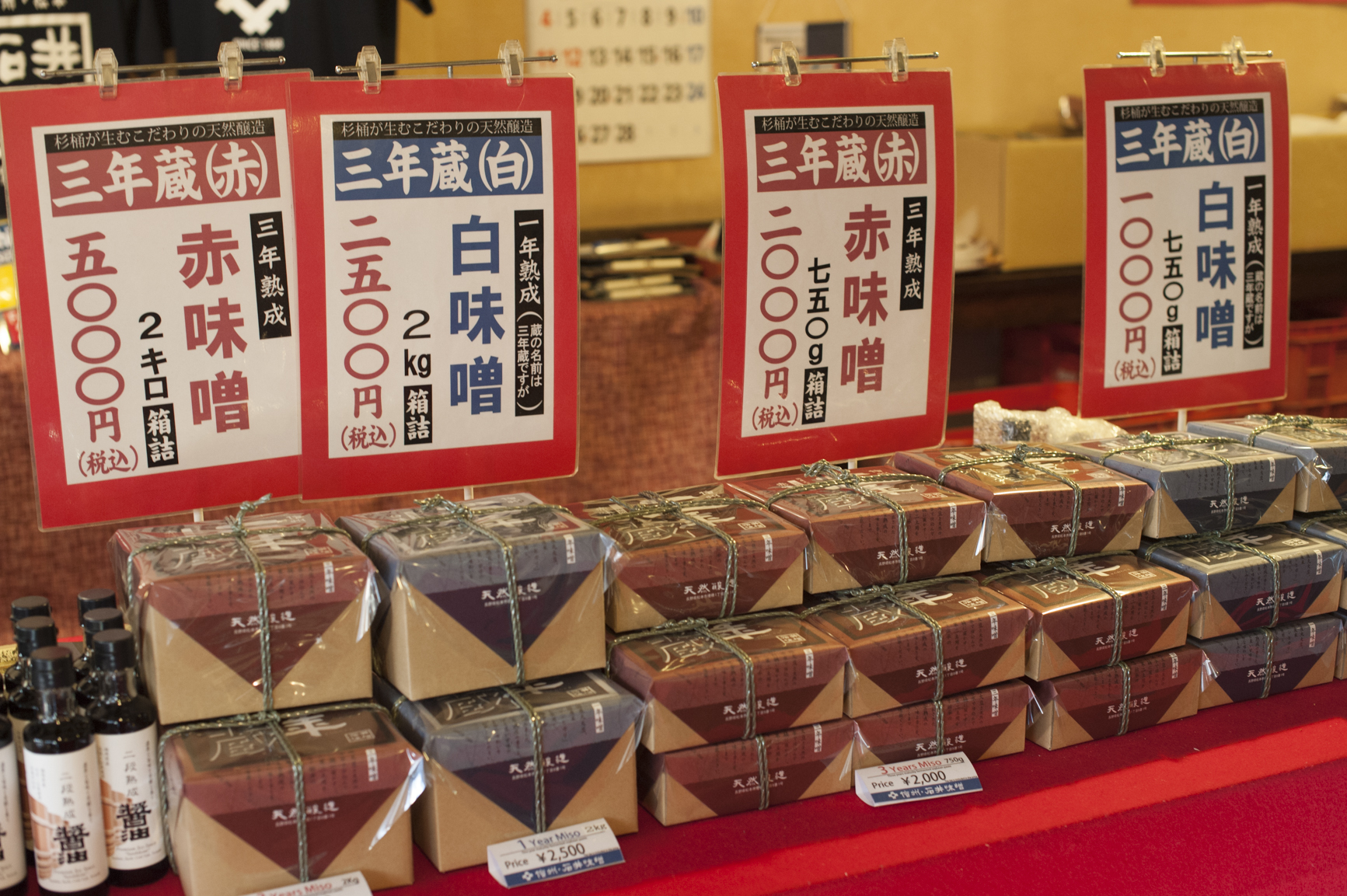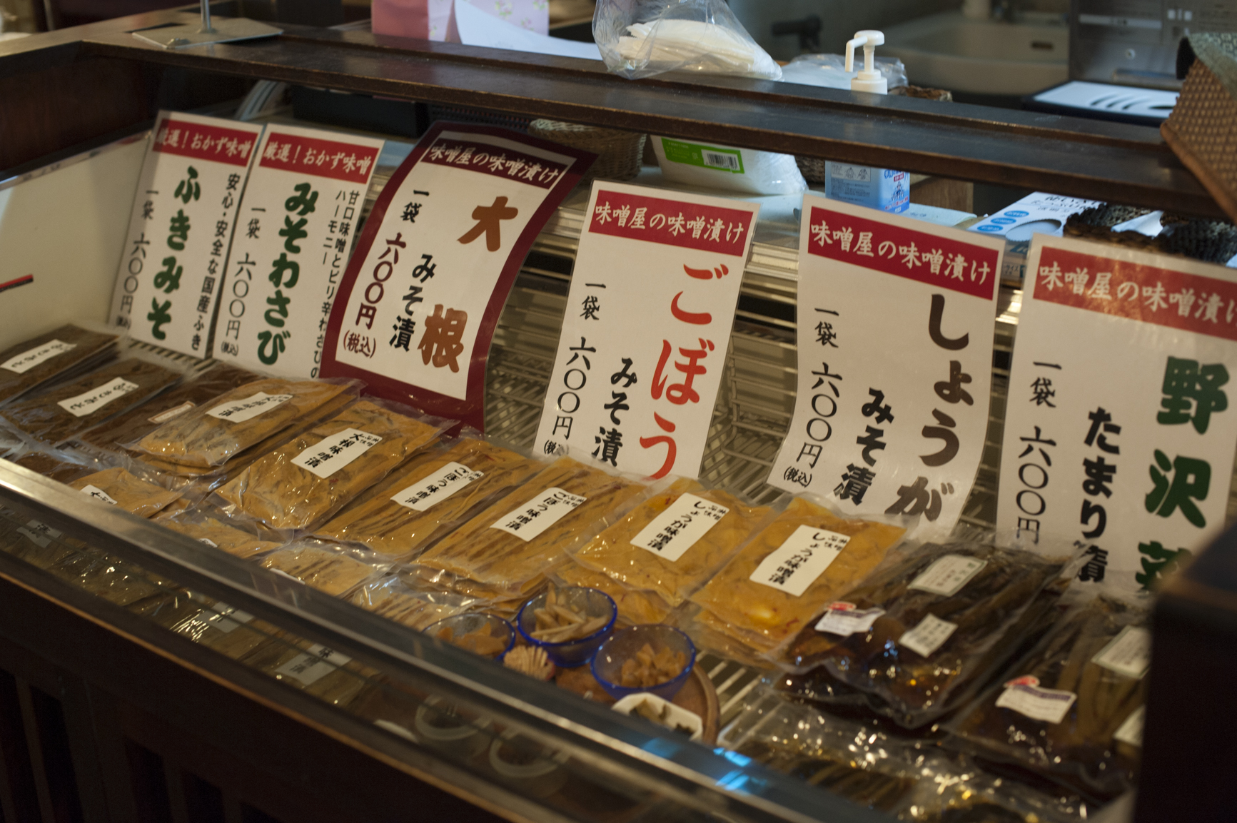 売店には、三年味噌はもちろん、味噌を使った漬物や菓子など、沢山の味噌関連商品が並んでいます。お土産を探すのにも良さそうです。