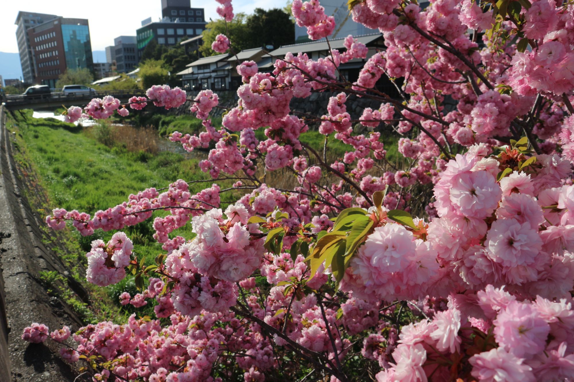八重桜は、ソメイヨシノが散ってからおおよそ2週間ほどして咲き始めます。