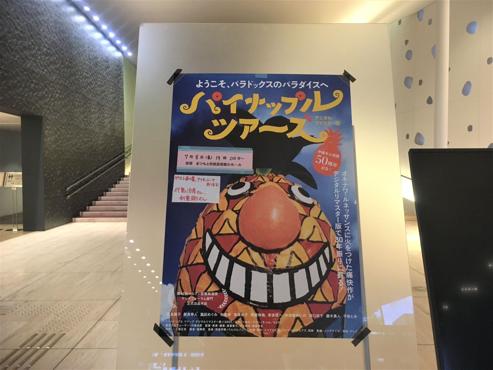 『ばちらぬん』『ヨナグニ~旅立ちの島~』の上映会に続き7月8日まつもと市民芸術館で「パイナップルツアーズ」上映会が行われました。