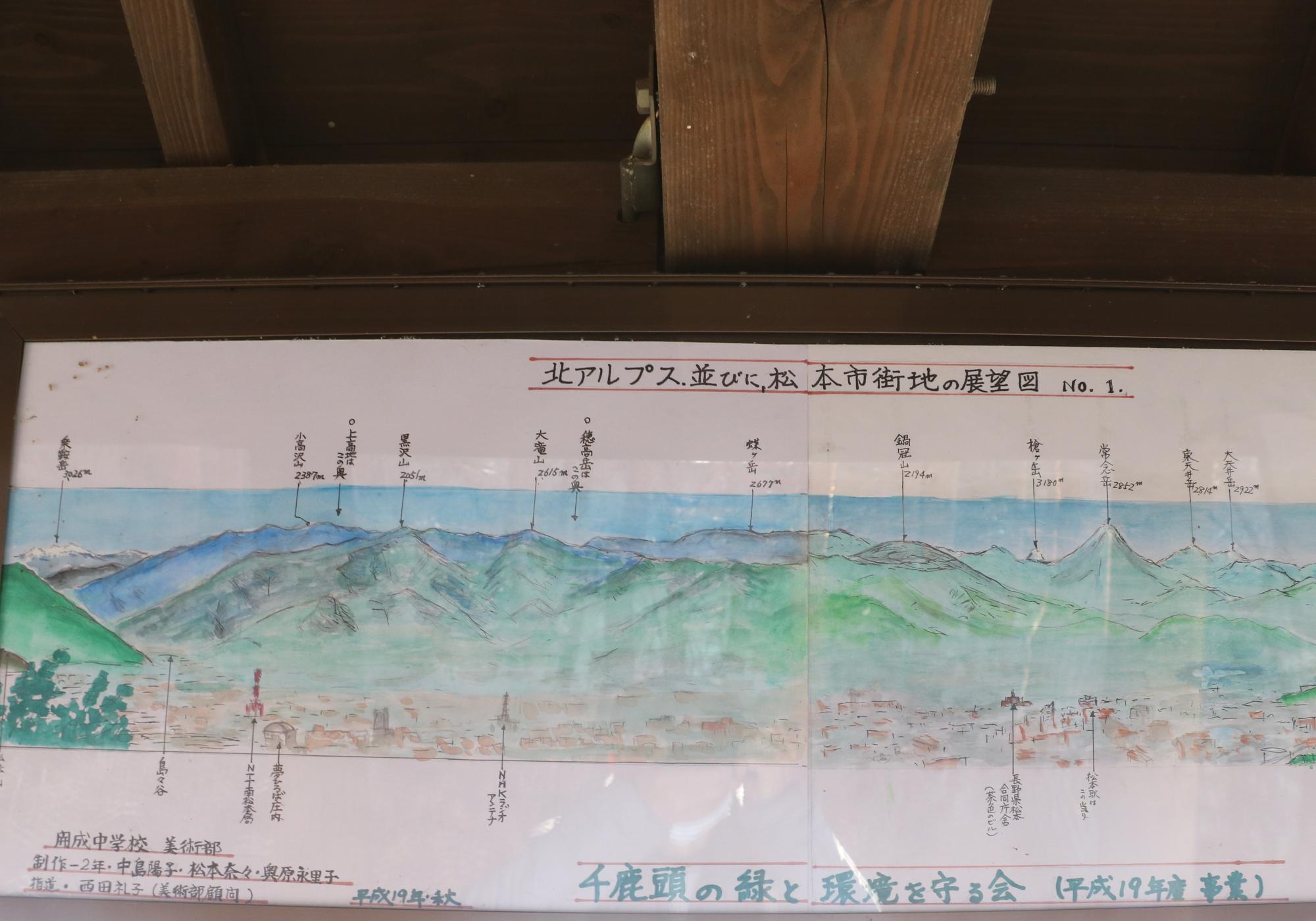 3月19日朝7時、千鹿頭山森林公園展望台から北アルプスを一望。穏やかな良い天気で絶景が見られました。午後には早くも風が出て、北アルプスも霞んできました、お出かけは早朝がお勧めです。松本駅より車で約15分。千鹿頭池の入り口には無料駐車場もあります。