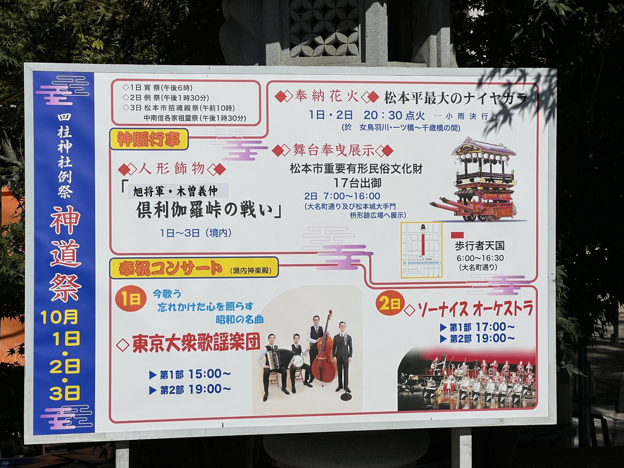 毎年10月1.2日は、松本市の市街地にある四柱神社の神道祭りが執り行われます。