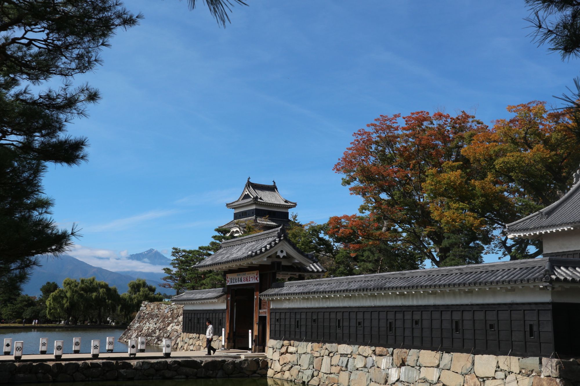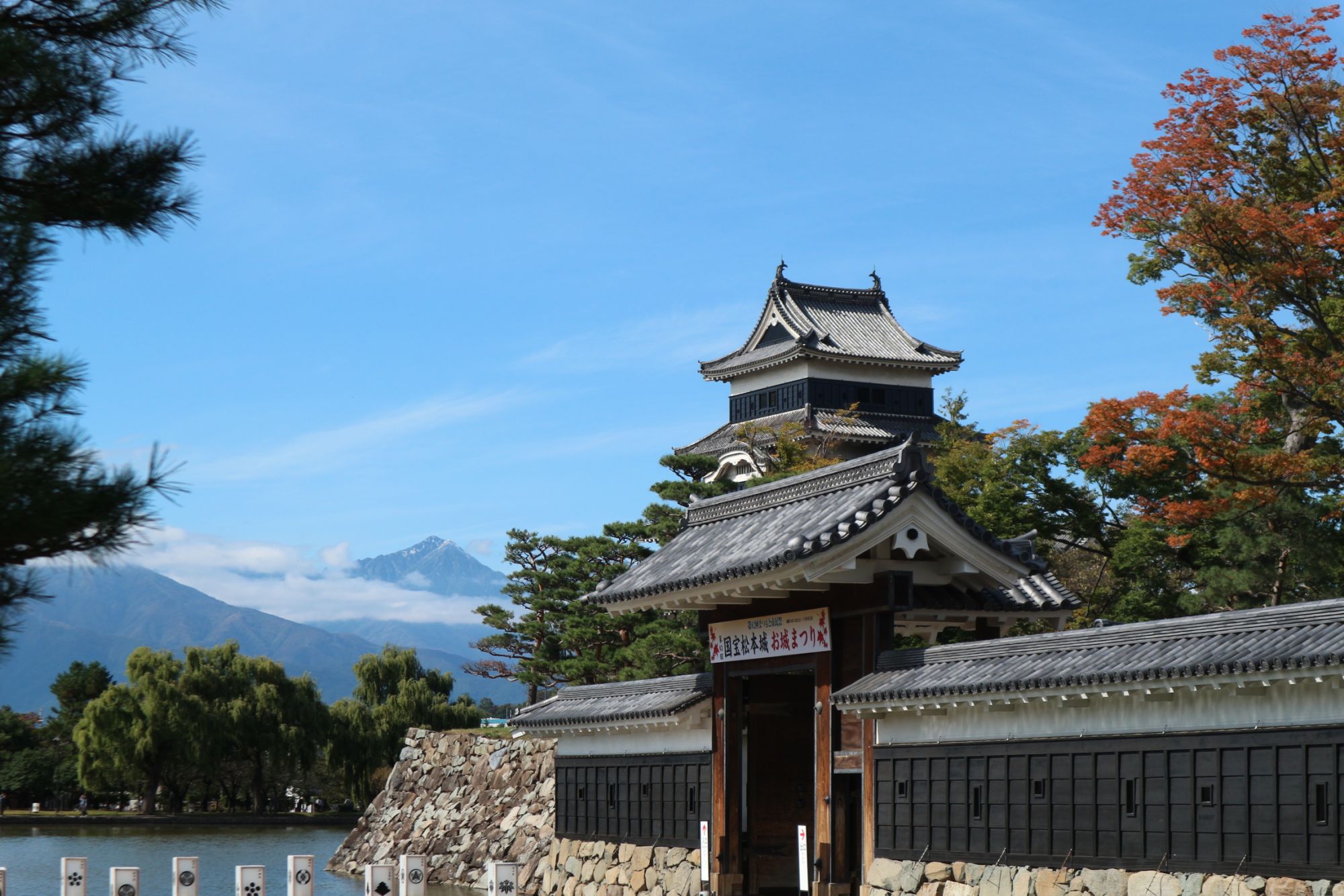 国宝松本城から望む 北アルプス令和 初冠雪❄ 北アルプス 紅葉 国宝松本城 2019.10.23 ♥72 いよいよ北アルプスに冬が到来しました。 2019年10月22日前夜から降り続いた雨がお昼ごろまで残り寒い朝になりました。 厚い雲に覆われていた22日でしたが、午後には晴れて山が見えたそうです。 今日23日は久しぶりに太陽が顔を出しいい天気になりました。 晴天の国宝松本城に出かけました。松本城の向こうに見える北アルプスに雪が降りました! 松本城の木々も色づきはじめました! Tweet