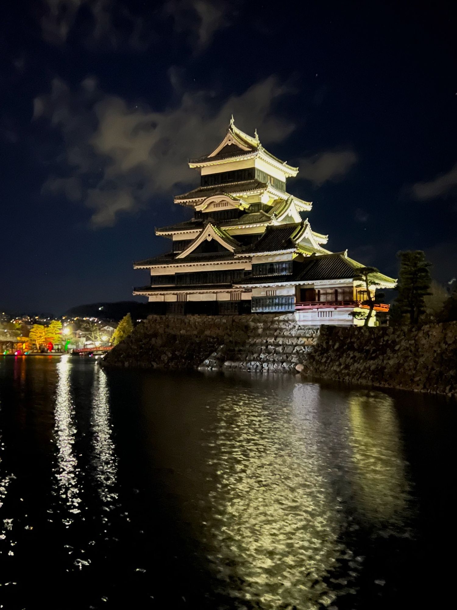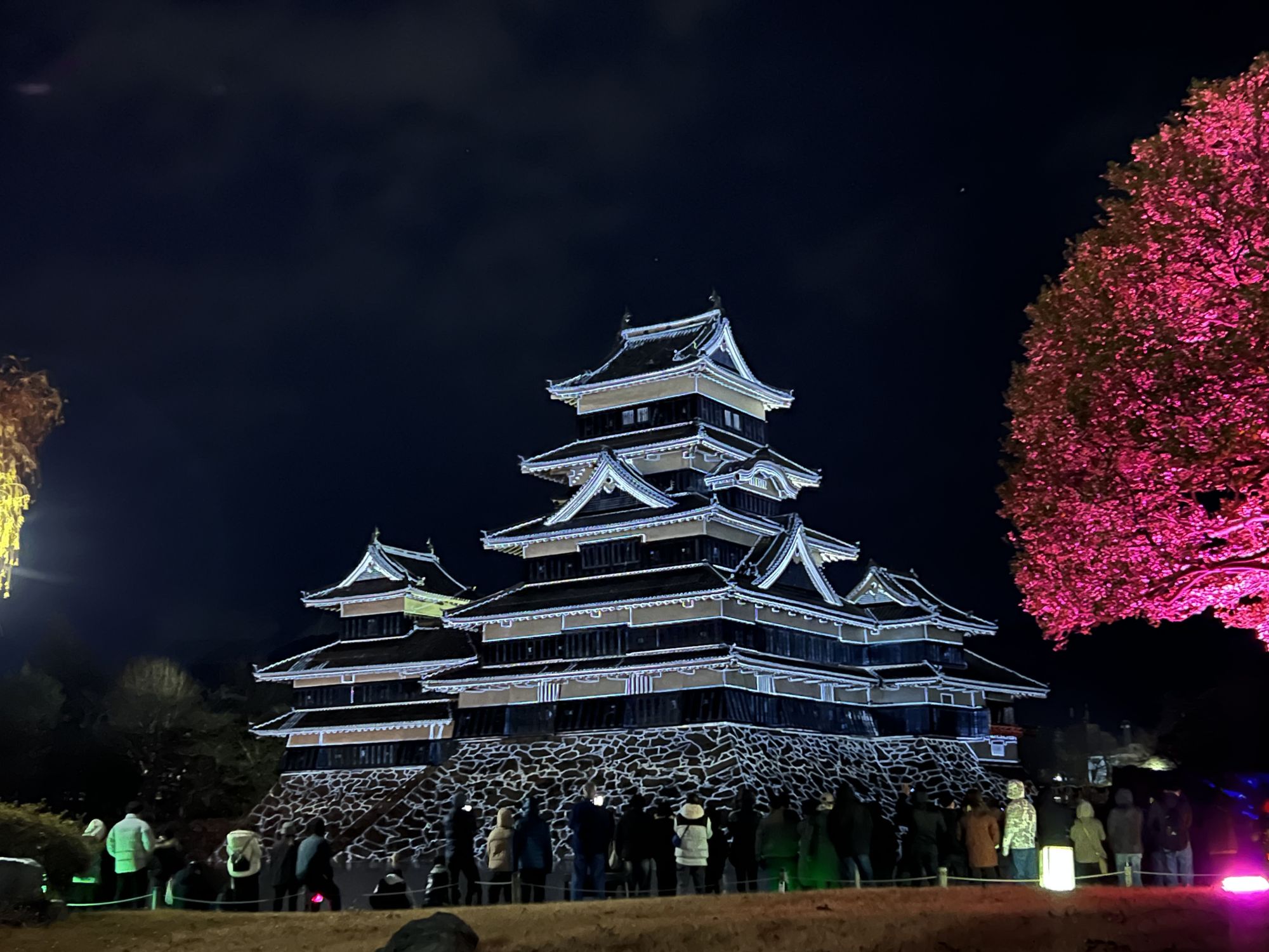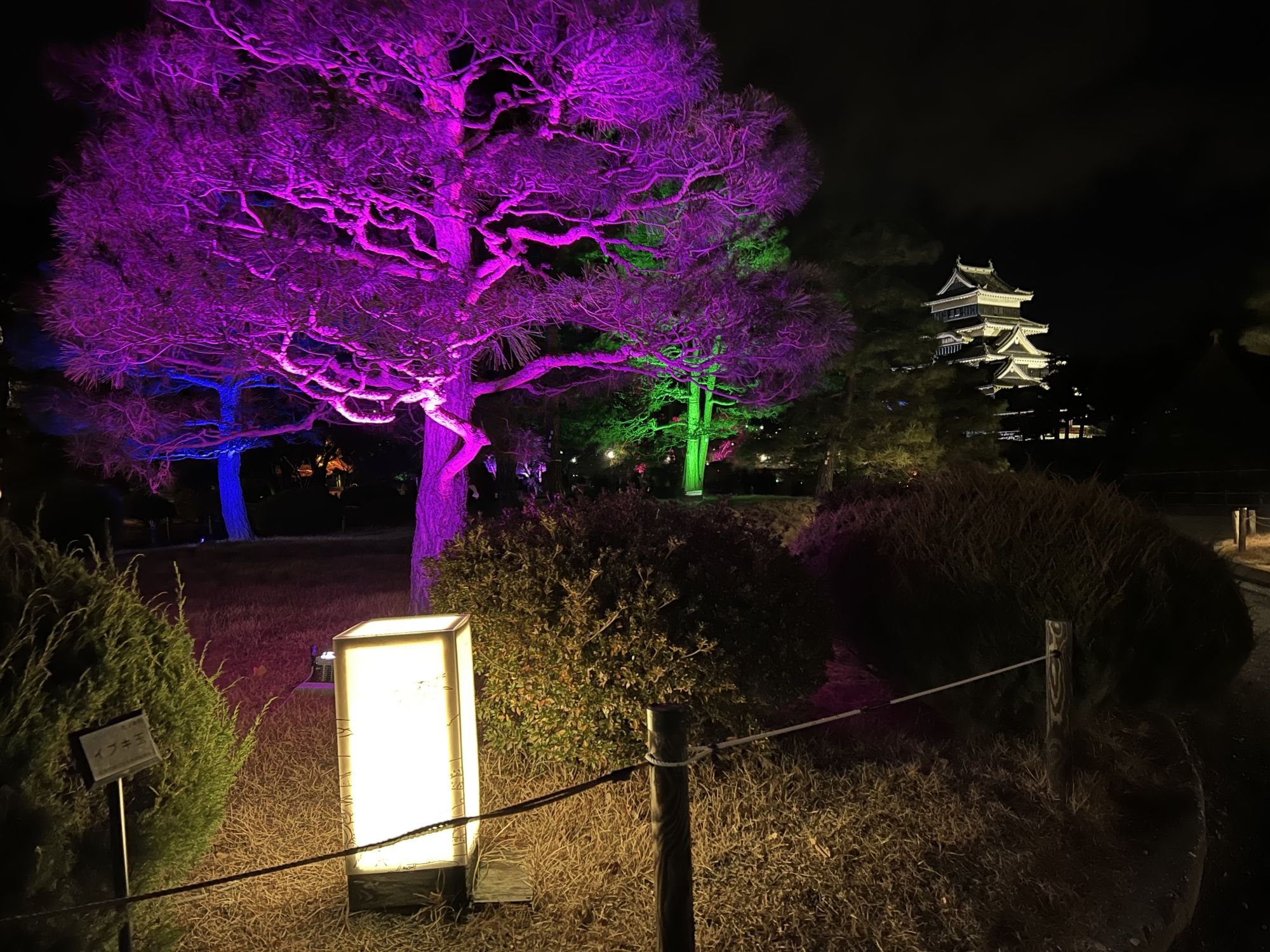 松本城公園に入ると木々もライトアップされていました。