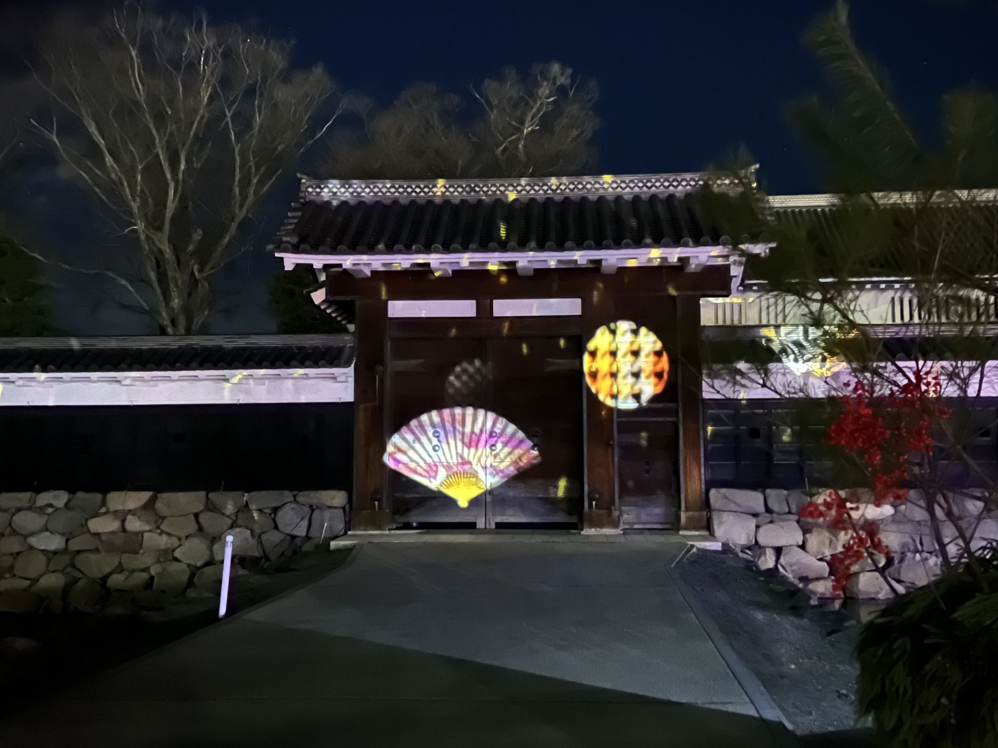 今回は、天守と別に黒門にもプロジェクションマッピングが投影されています。