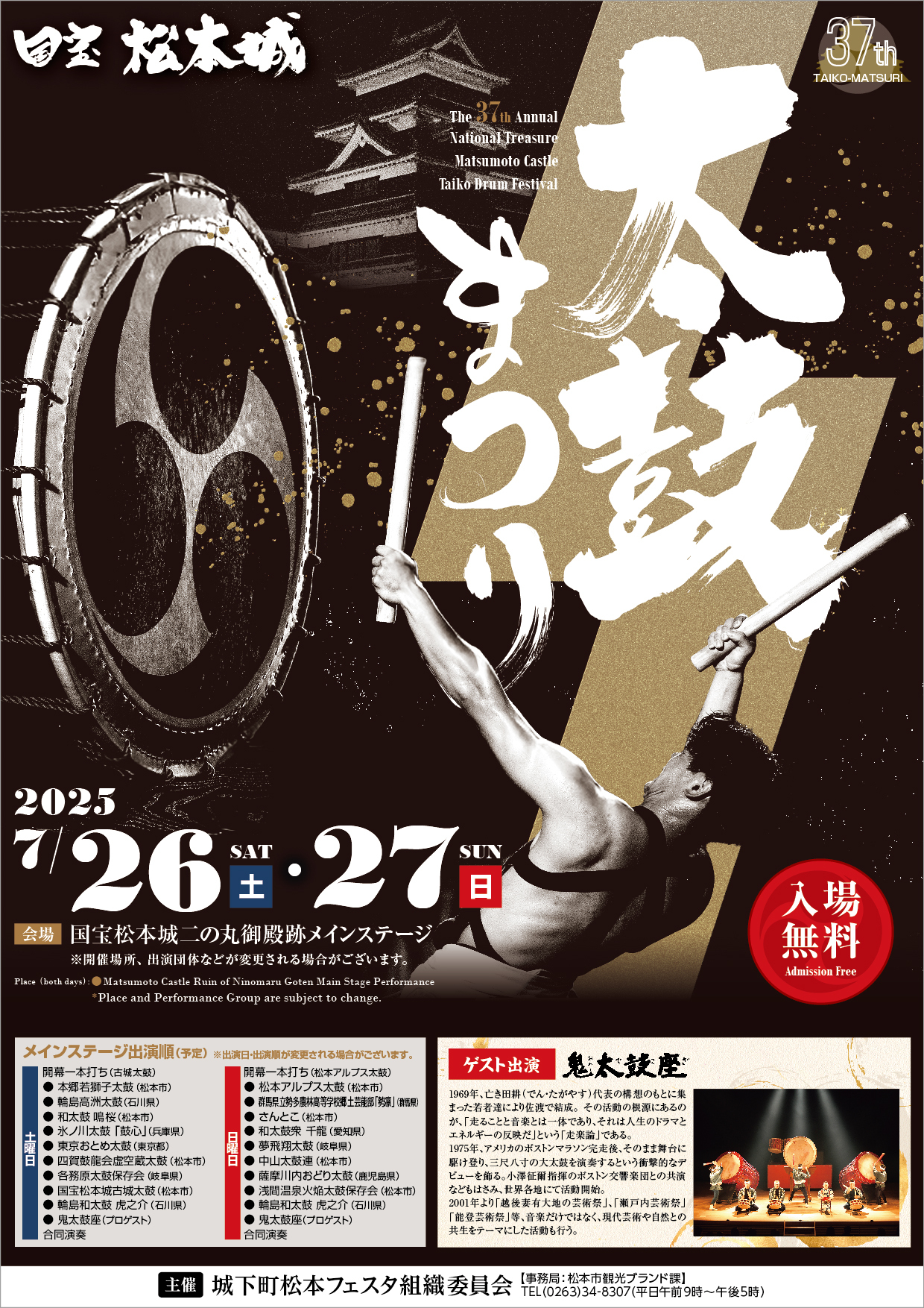 国宝松本城太鼓祭り 街中演奏♪桝形跡広場
