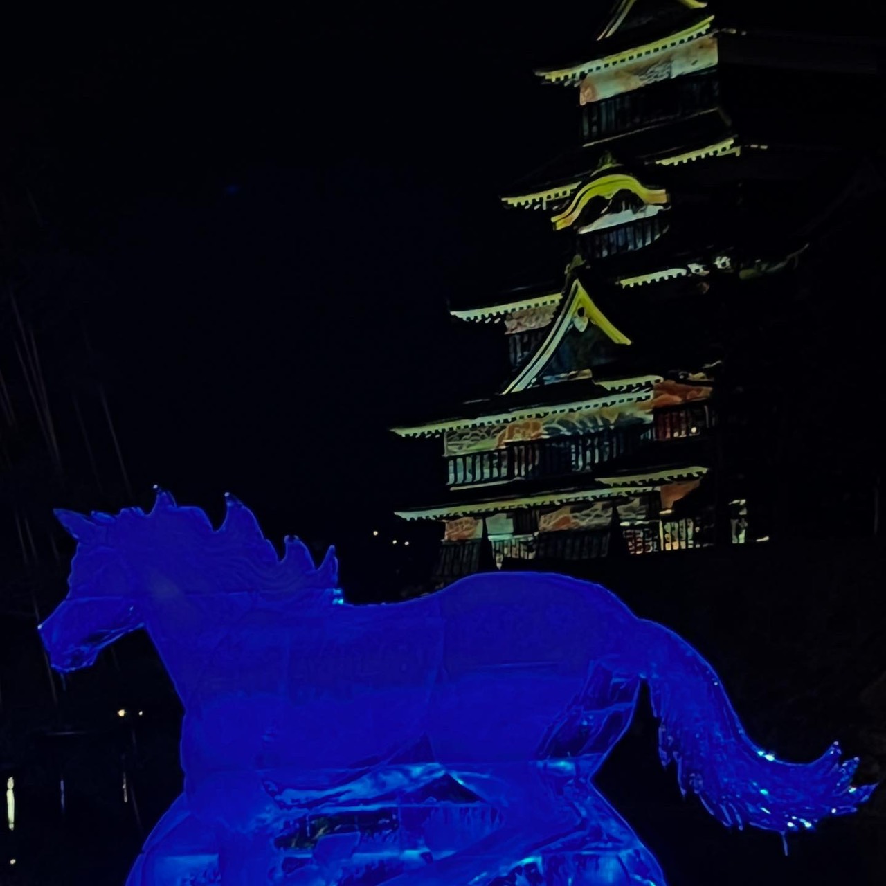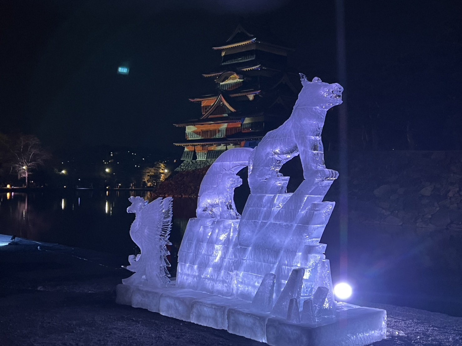 すでに松本の冬の風物詩となっている「国宝松本城氷彫フェスティバル」