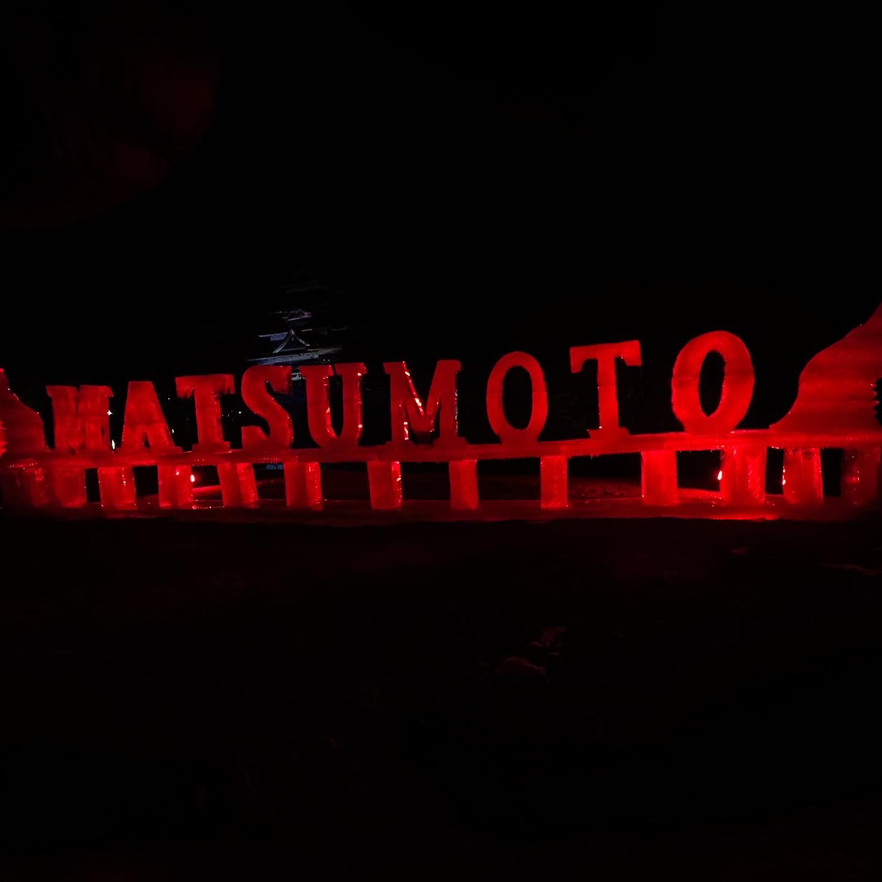 明日の夕方には撤去される氷彫 「MATSUMOTO」をバックに大勢の人が写真を撮っていました。