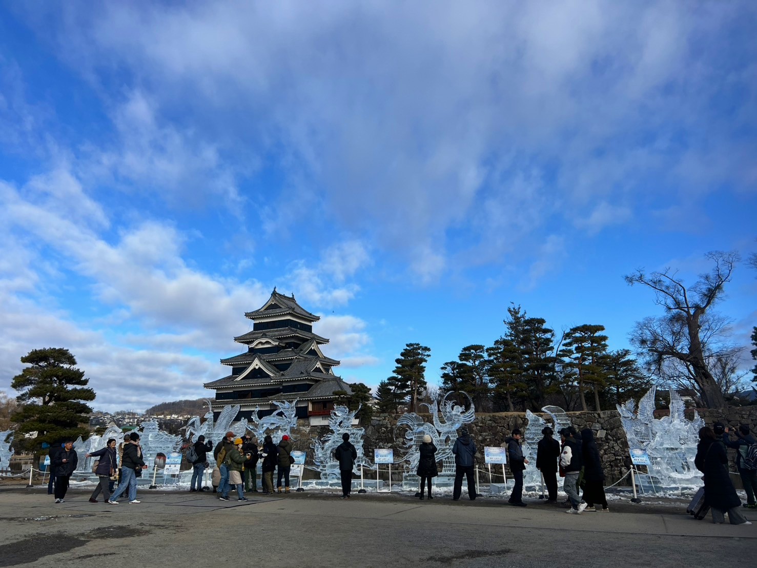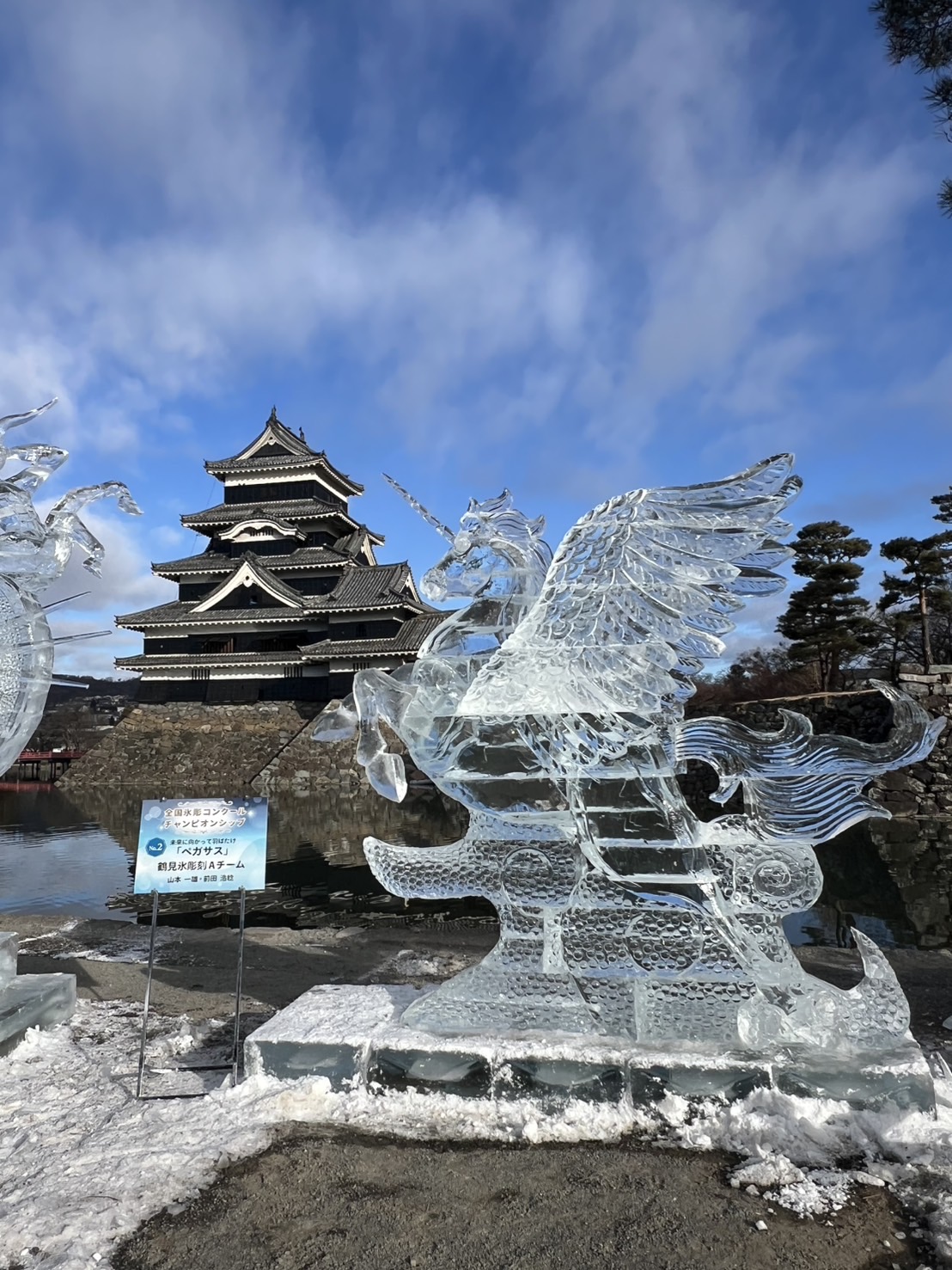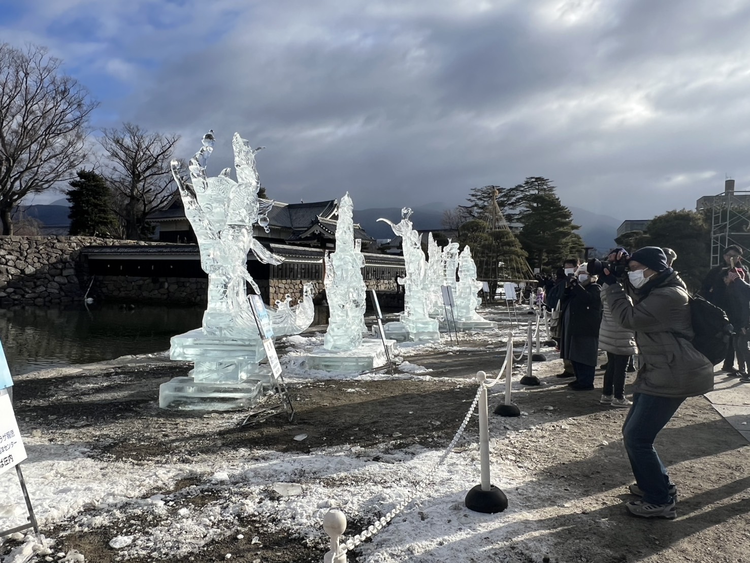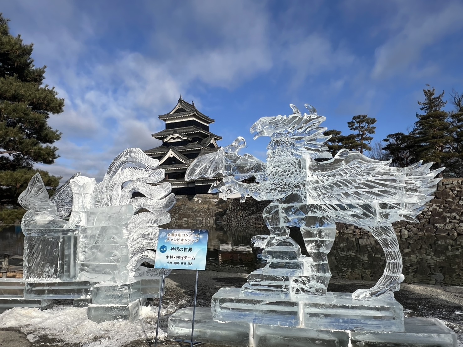 松本城公園では、国宝松本城氷彫フェスティバルチャンピオンシップの作品が並んでいました。