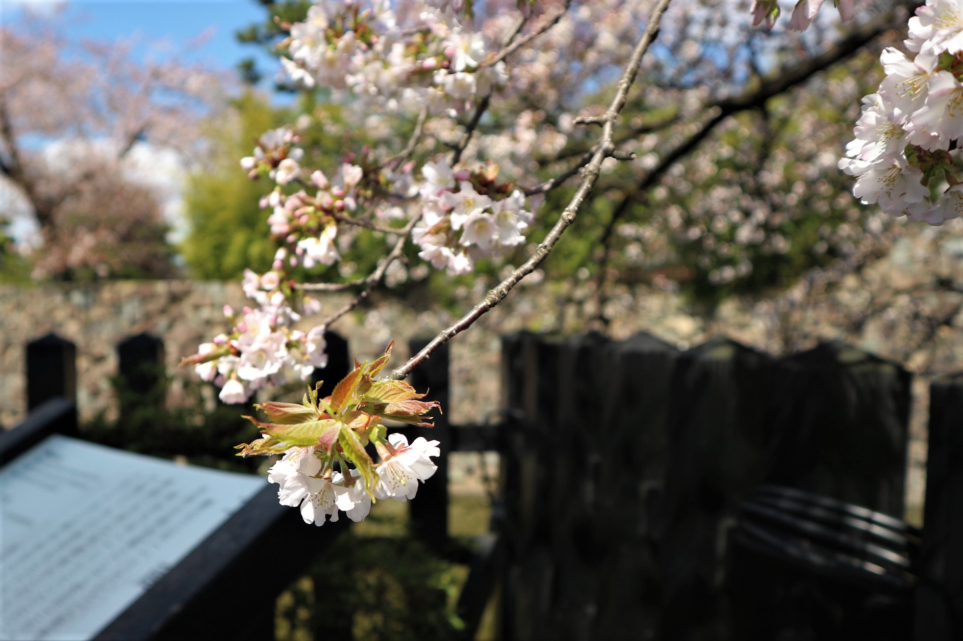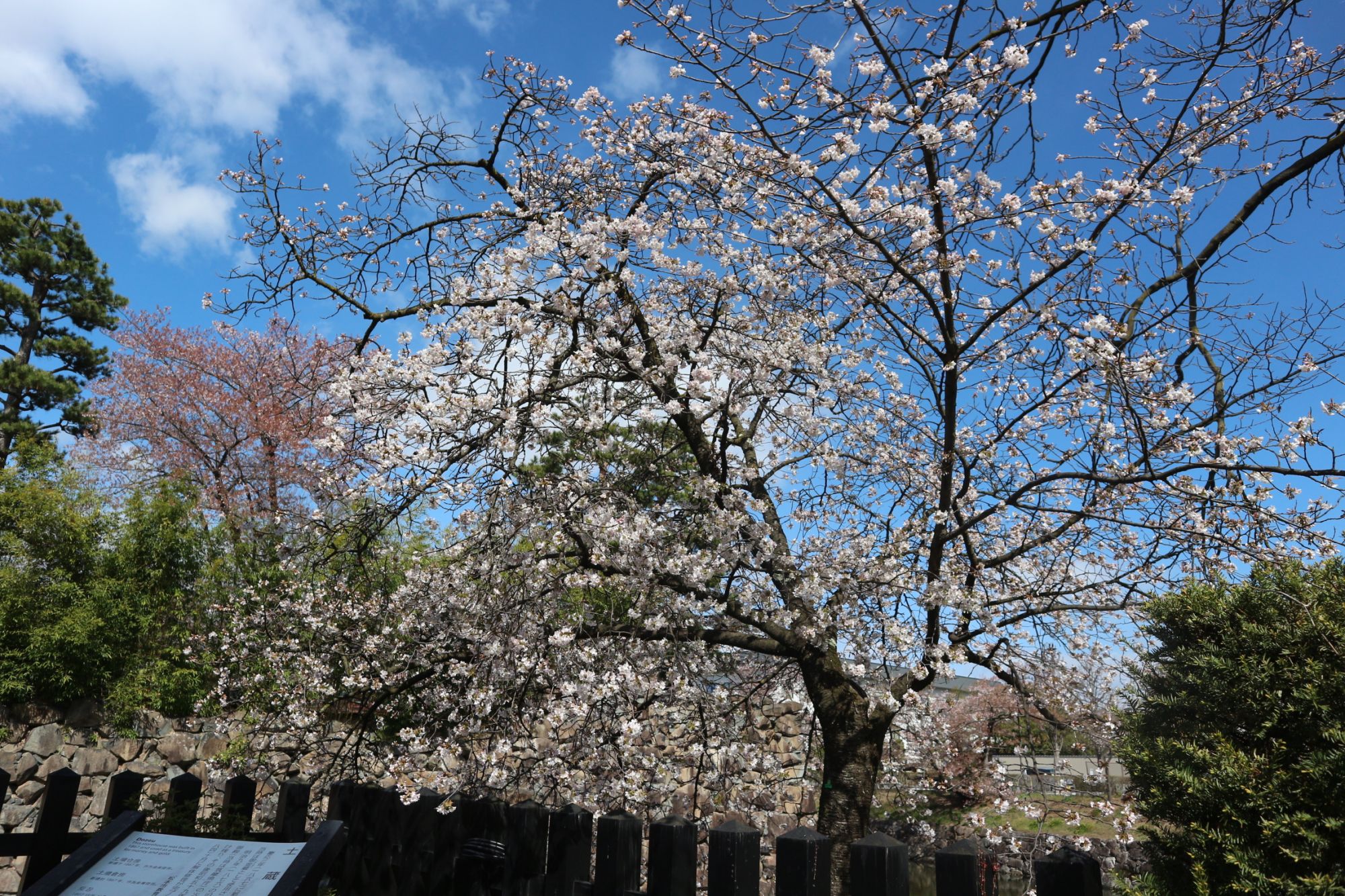 ソメイヨシノではない桜です。二の丸御殿跡は、あえて違う品種を植えたのでしょうか。順番に花が咲くのを楽しめます。
