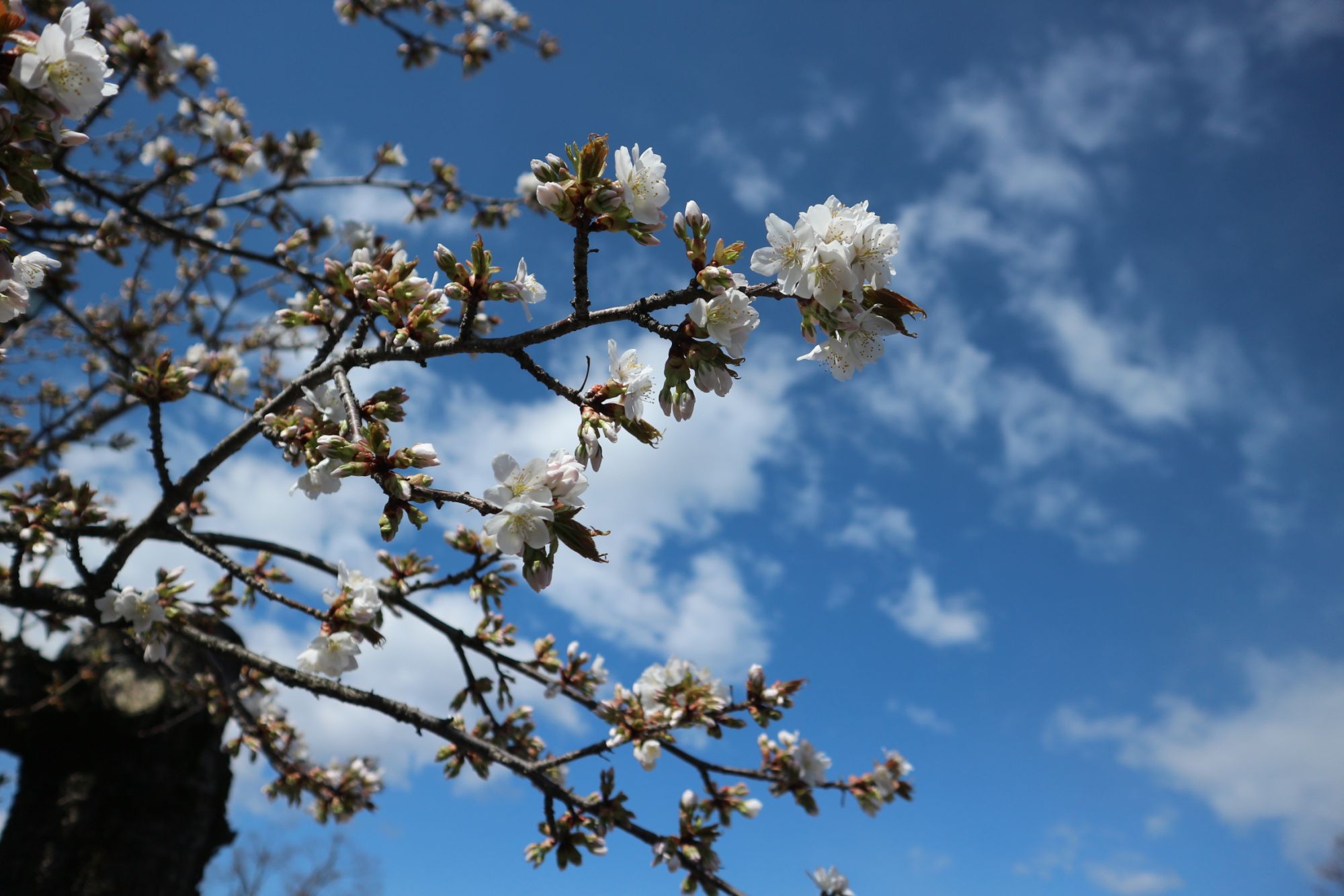 二の丸御殿跡の遅咲きの桜が咲き始めています。