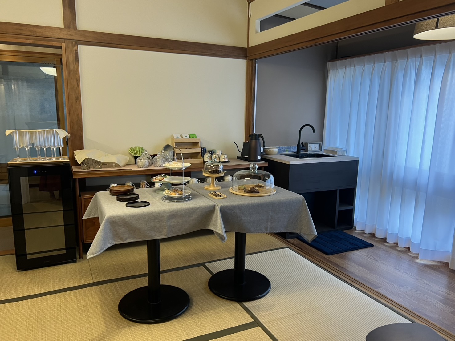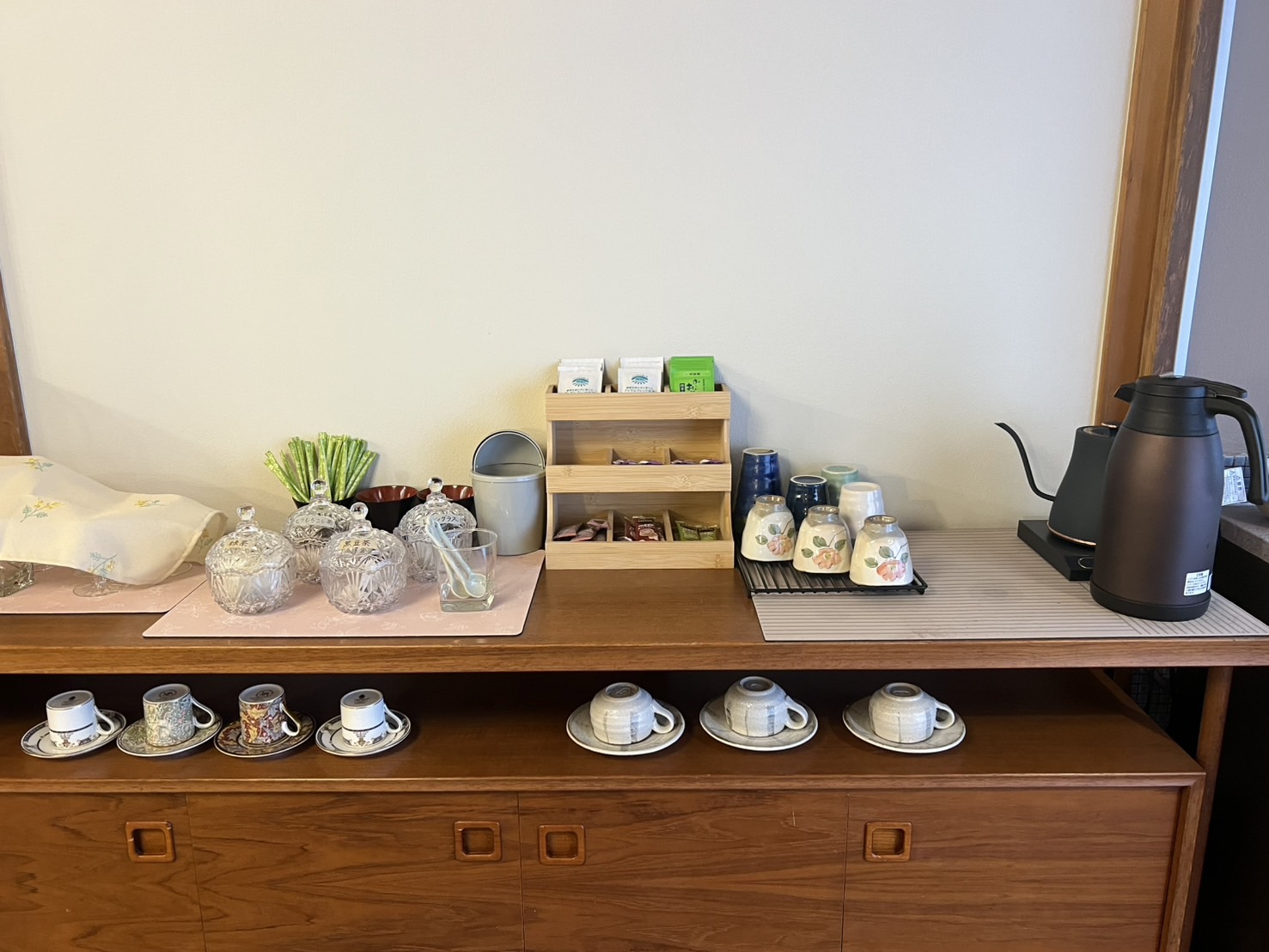 別室に自由にドリンクとお菓子を頂けるコーナーがあります。
