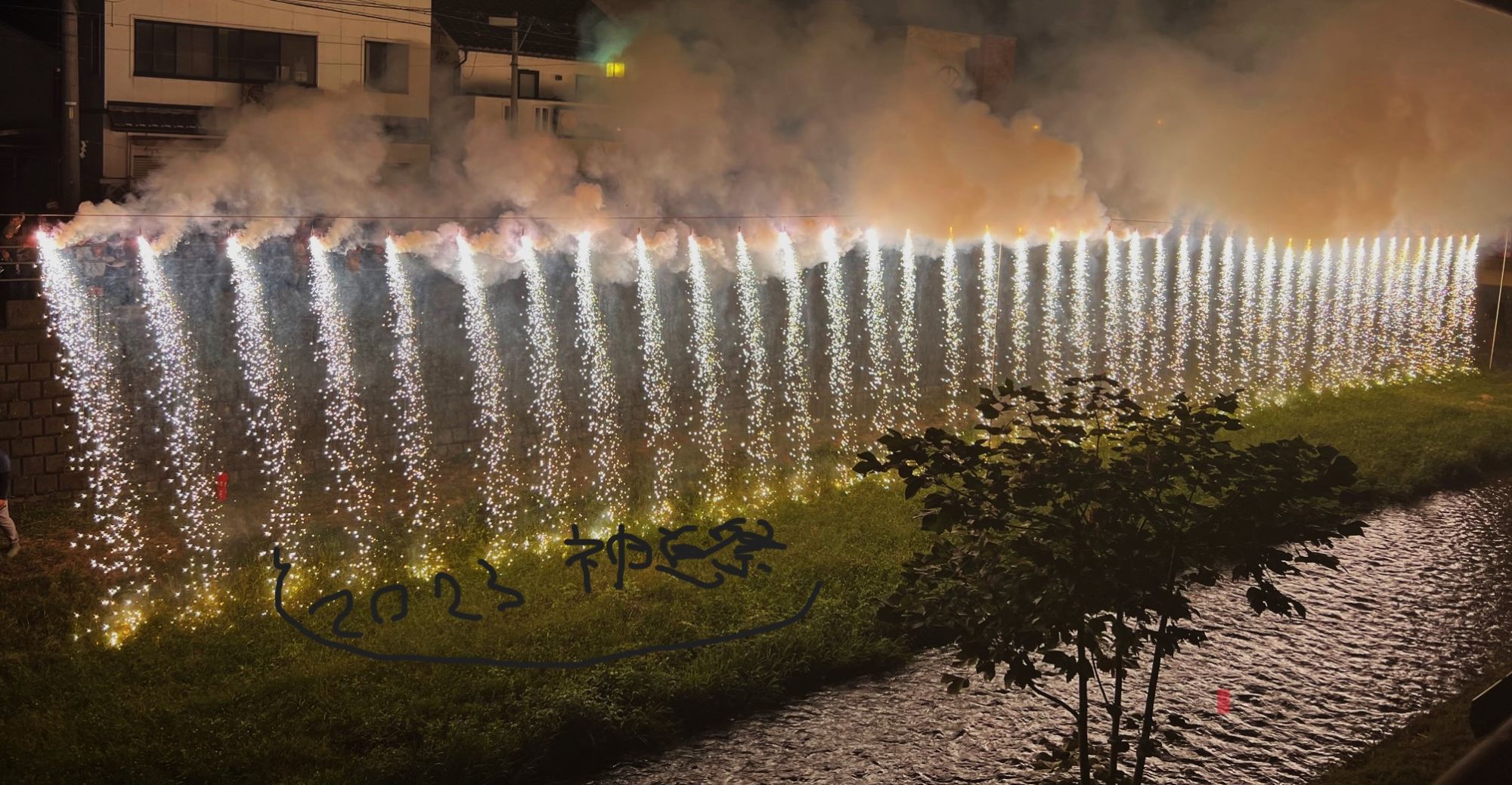 夜8時半から1・2日両日奉納花火が打ち上げられました。