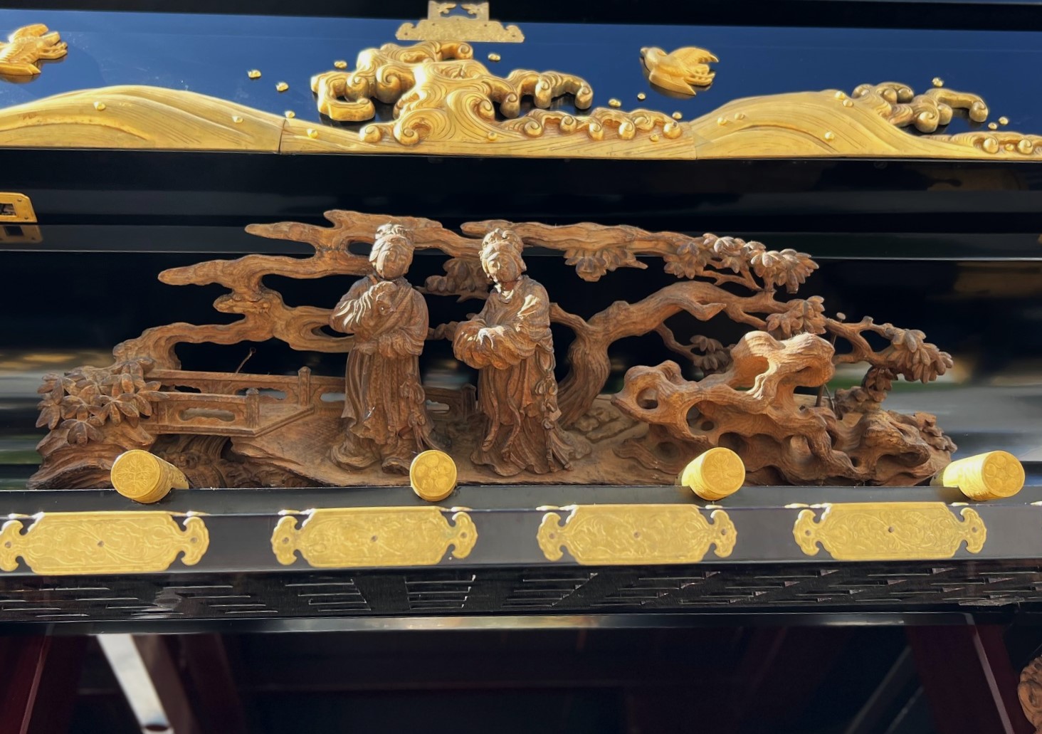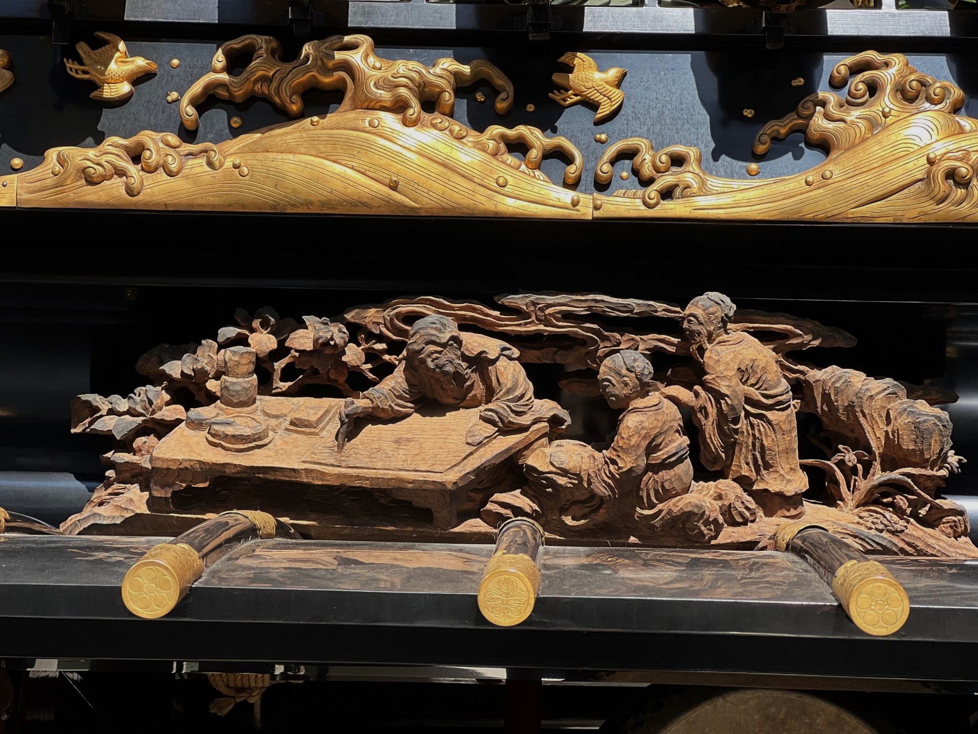 博労町の舞台に施された木彫は美しいです。