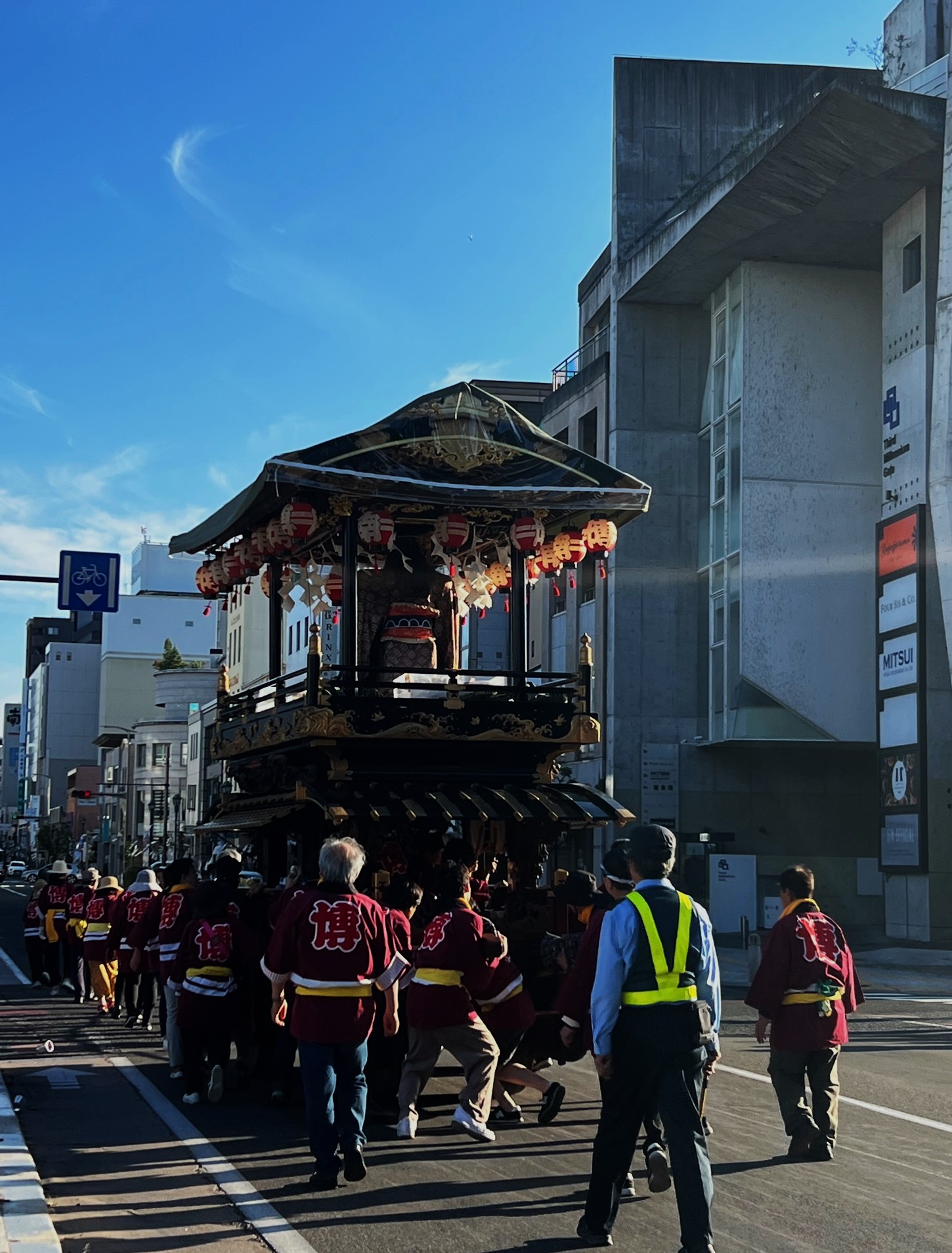 ちょうど博労町の舞台を曳く現場に居合わせたので、撮影させてもらいました。