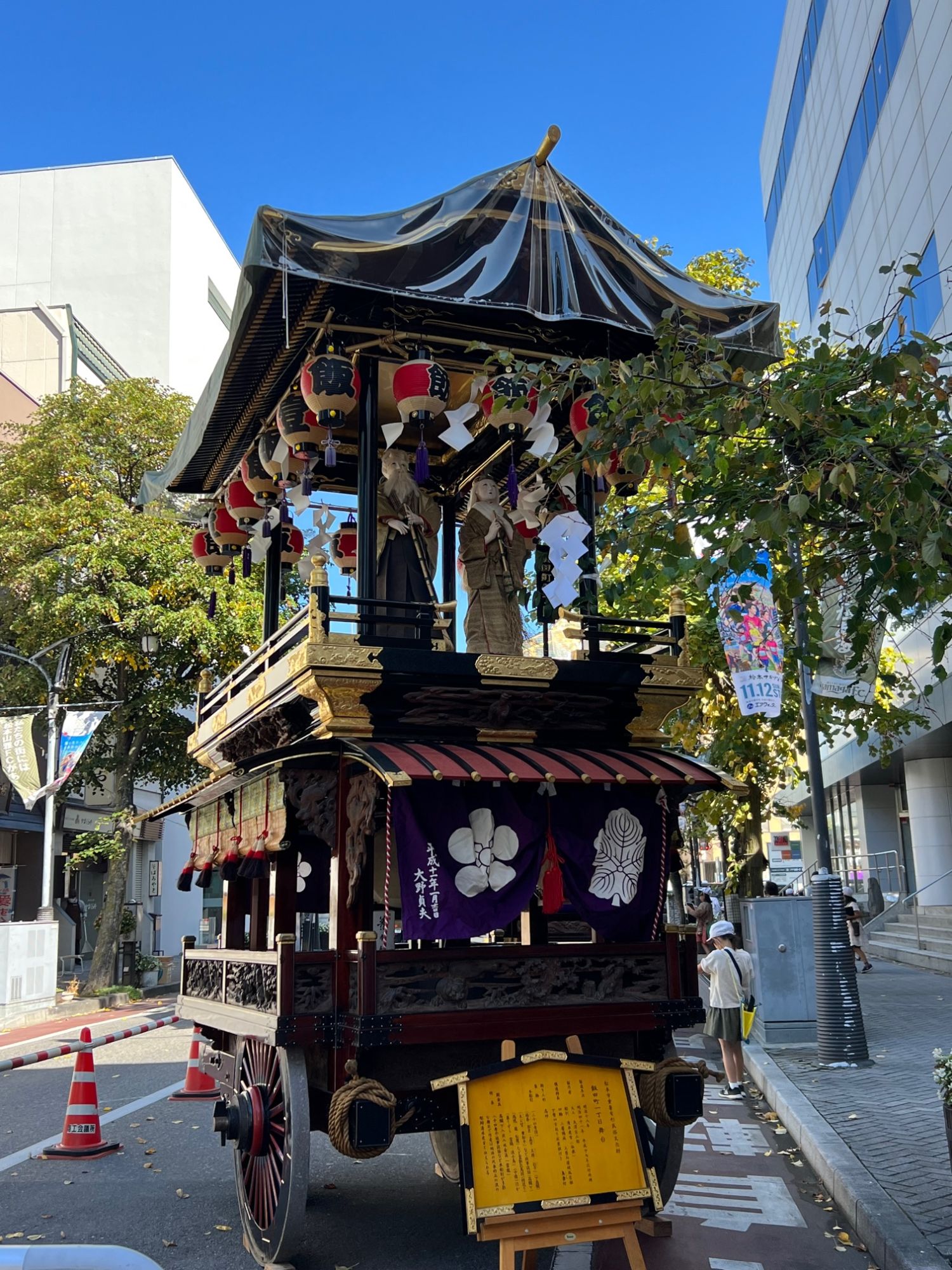 早朝から大名町通り・桝形跡広場・7日に開館する松本市立博物館前に「松本深志舞台保存会の舞台18台」が展示されました。