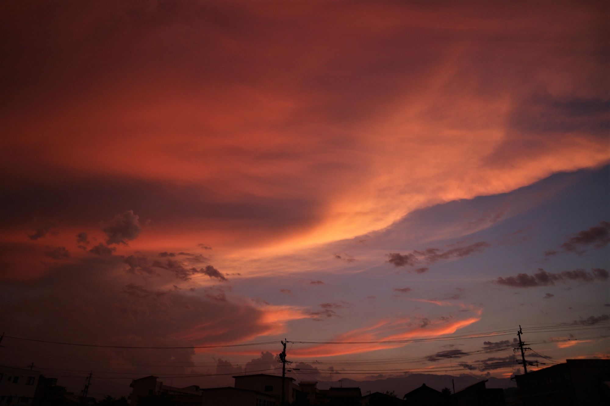 夕焼けが紅い暑い日々 夕焼け 国宝松本城 2020.8.21 ♥76 猛暑日が続く松本市 8月19日夕方になっても西の空に雲が出ていないので、松本城に夕焼けを見に出かけました。 松本城公園 ベンチには先客の猫さんが、暑い1日で昼寝が出来なかったのか熟睡中! ベンチに寝る猫 松本城夕焼け 陽が落ちてしばらくするとお目覚めです! お目覚め猫 ニャーと言いながら公園内をスタスタ歩いて行きました。 国宝松本城夕焼け 8月20日も引き続き猛暑日 外に出ると空気が紅く染まっていました。空全体が色づいていました。 夕焼け 東 夕焼け西の空 西の空 今日も最高気温予想37度です。熱中症に気をつけてお過ごしください。 Tweet