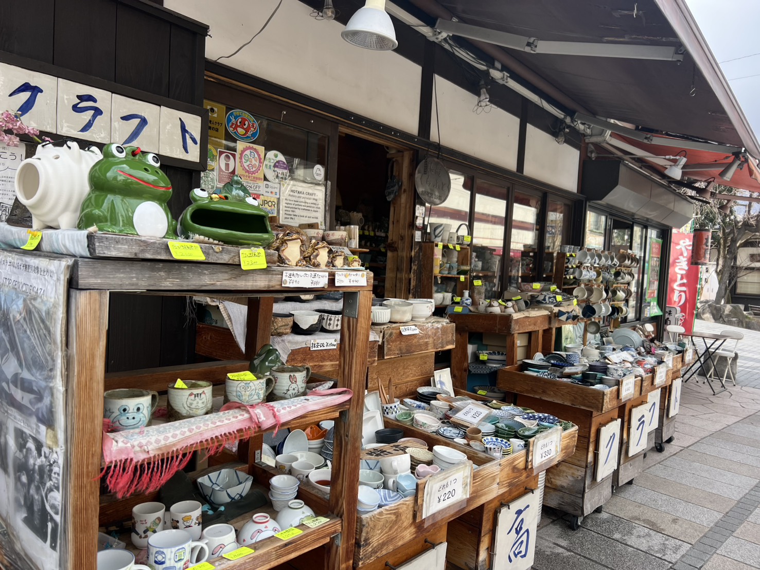 店頭には、ワゴン内に220円から安くて素敵な陶器が並んでいます。