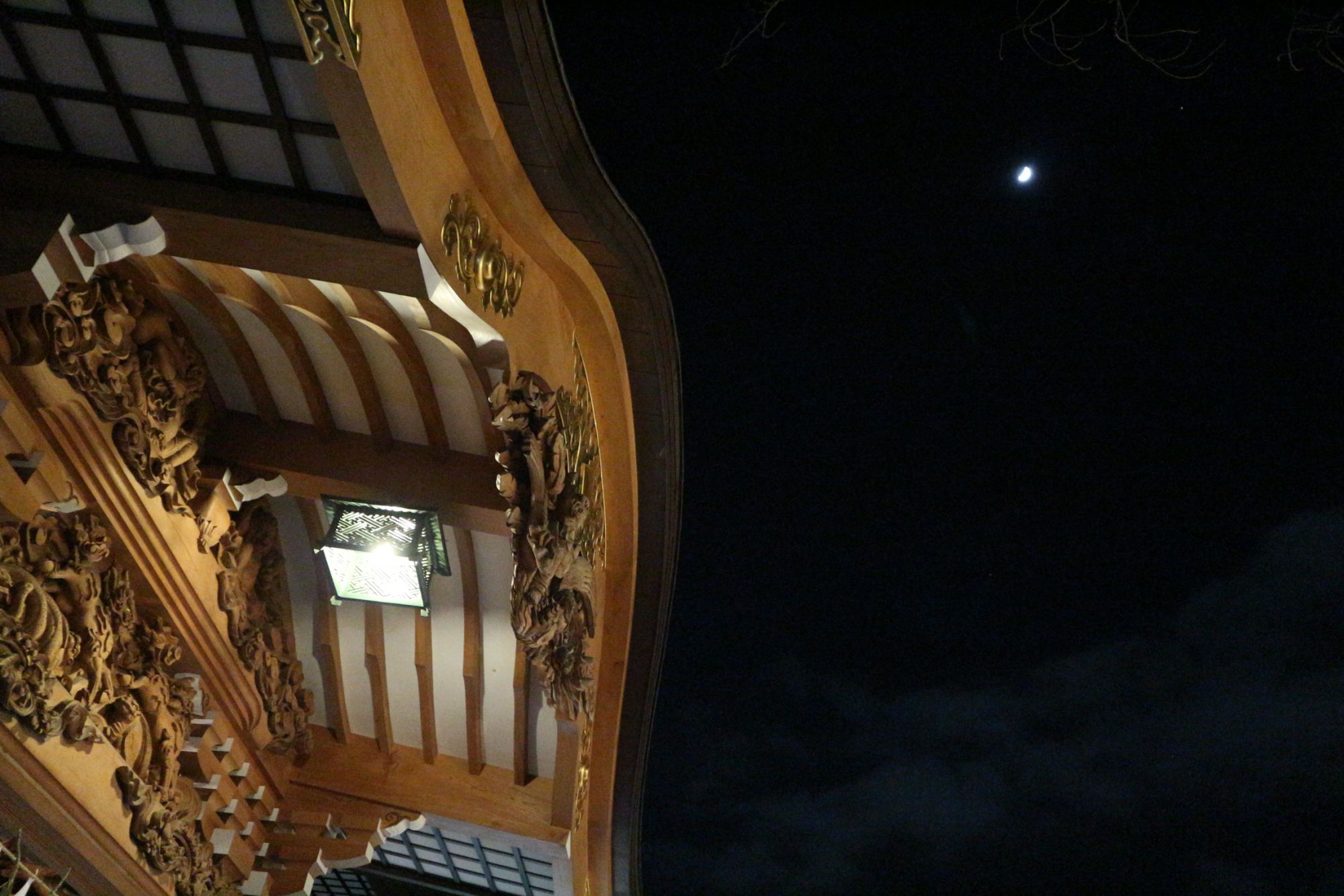 夜でも大勢の方が大わらじに乗りに、お参りに来ていました。