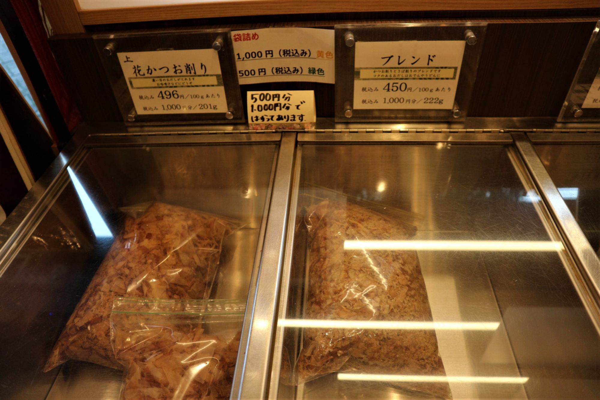 取扱品目は、削り節、煮干、昆布、干し椎茸などの乾物全般で、慶弔の引き出物や御贈答用品の販売もしています。