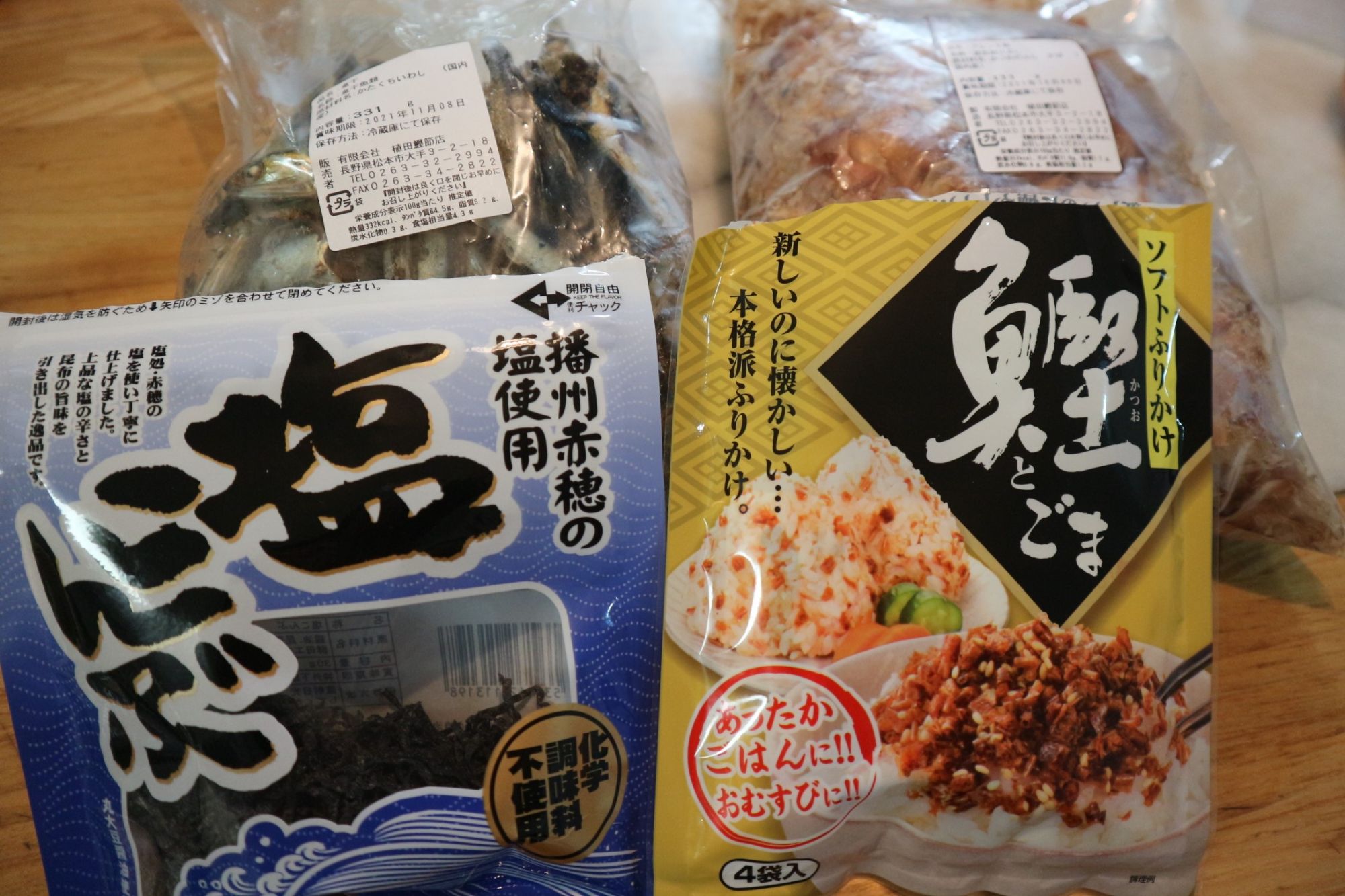 煮干し、鰹節、塩昆布、羅臼昆布(撮影忘れ)