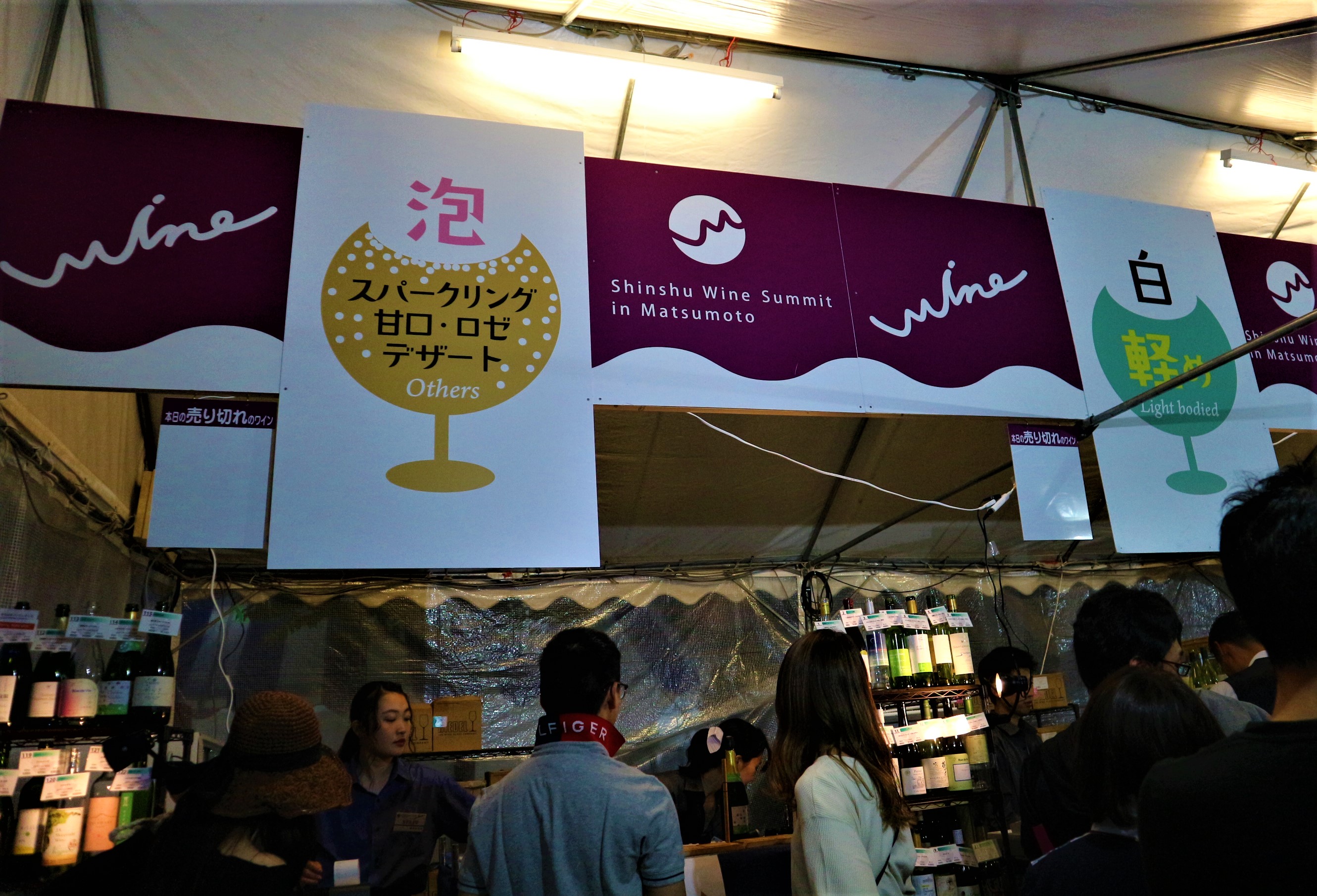 wineブースは、赤・白・スパークリングの3か所に分かれていたいずれも長蛇の列