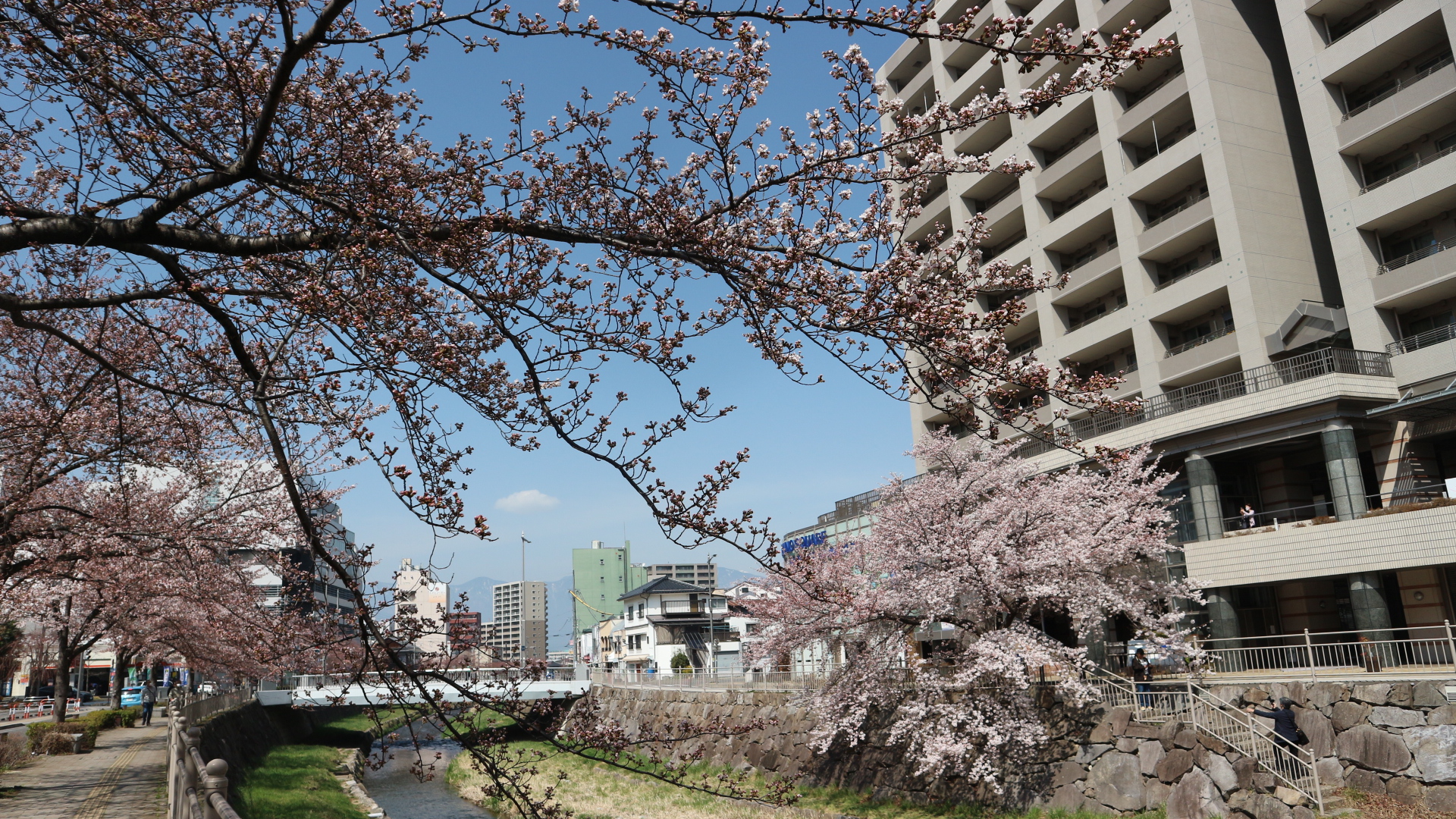 女鳥羽川のソメイヨシノ陽当りのいい場所から咲き始めてます。 桜情報 松本さんぽ 花情報 2022.4.7 ♥34 4月7日(木)松本市街地を流れる女鳥羽川ソメイヨシノが咲いてます。 陽当たりのいい六九側のソメイヨシノは、かなり咲いて来ています。 時計博物館側は、日陰のせいかまだつぼみが多いです。 時計博物館前から 女鳥羽川千歳橋下流 千歳橋から 千歳橋上流 幸橋から 幸橋から 川面に映えるソメイヨシノ ソメイヨシノと大山桜 大山桜は満開です。 女鳥羽川大山桜 いろんな花も咲き始め散歩も楽しいです。 花咲く Tweet