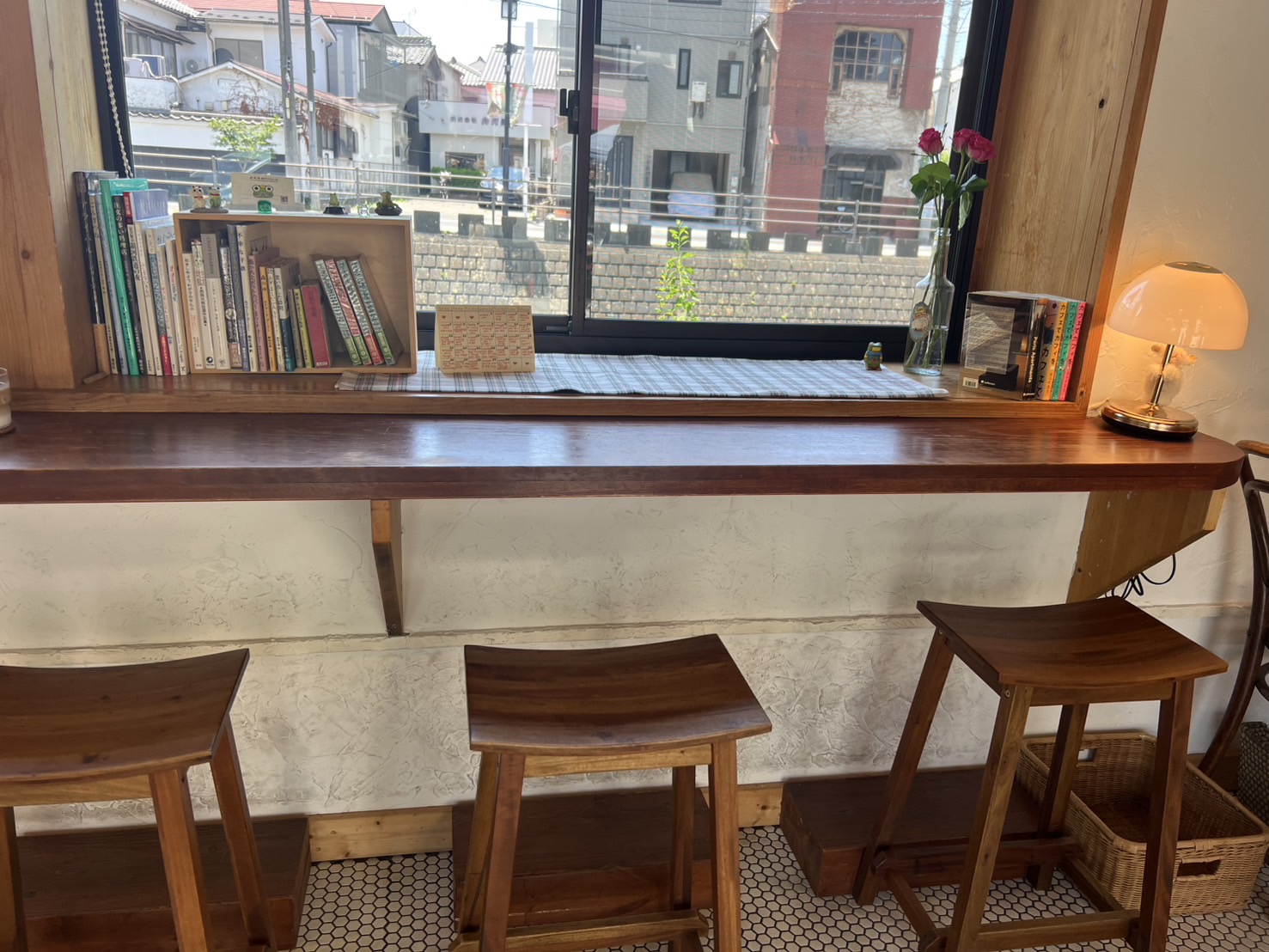 窓際のカウンター席にある小さな本やさん 「かえるBOOKS」