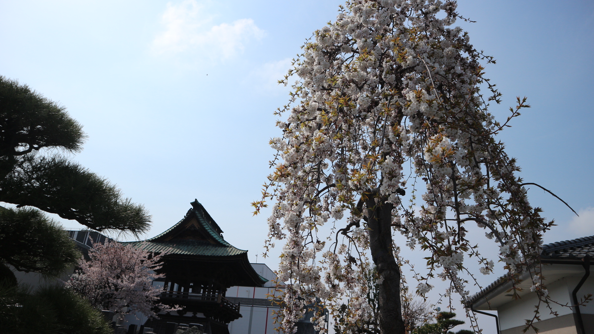 女鳥羽川左岸沿いの桜・旧念来寺鐘楼前の桜・なわて通りの枝垂れ桜????