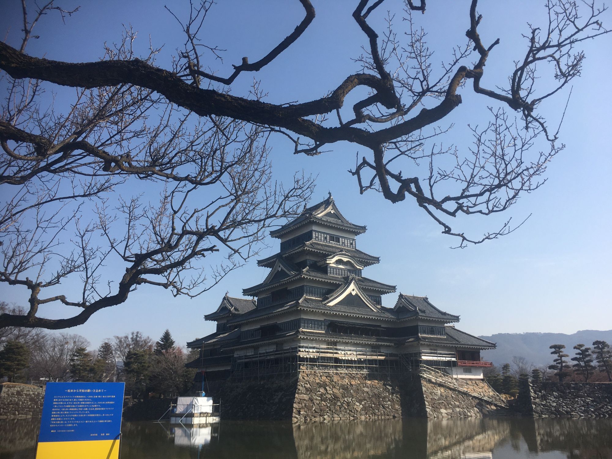 松本市は、一刻も早い停戦実現と平和への願いを込め、国宝松本城をウクライナ国旗色にライトアップしています。