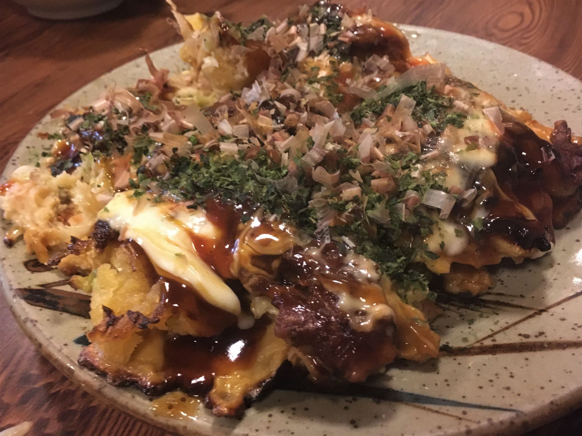 どれも美味しいですが、必ず注文するのはお好み焼き 注文してから時間がかかるので、1番最初に頼んでおきます。